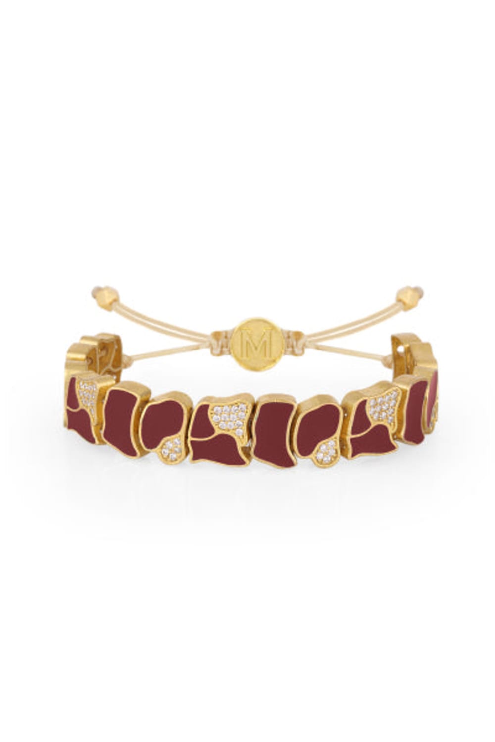 Melon Frozen Taşlı Kırmızı Mine Bileklik İthal Bronz Zirkon Taş Mine Kaplama Mum İp Ayarlanabilir Ölçü El yapımı