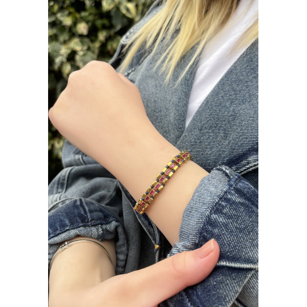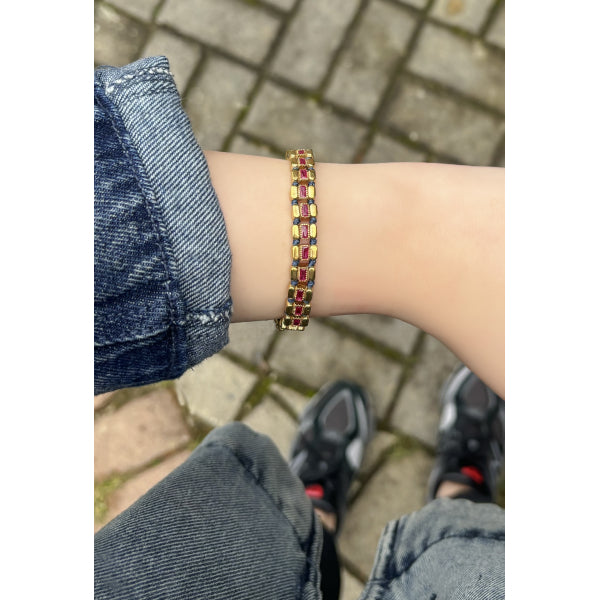 Melon Leo Kırmızı Baget Taşlı Bileklik Ölçü: AyarlanabilirMaden: İthal BronzHandmade