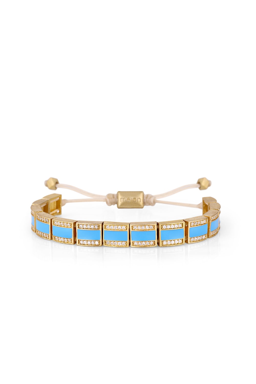 Melon Oldies Taşlı Mavi Mine Bileklik İthal Bronz Ayarlanabilir Ölçü Mum İp Mine Kaplama Spinel Taş