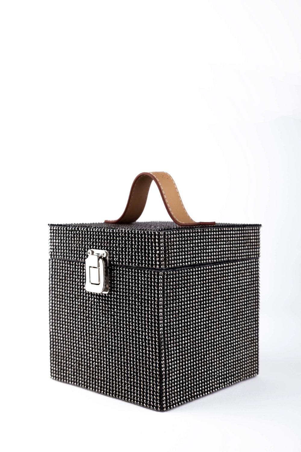 Black Crystal Akrilik Kristal Taşlı Makyaj Çantası 15cm X 15cm X 15cm