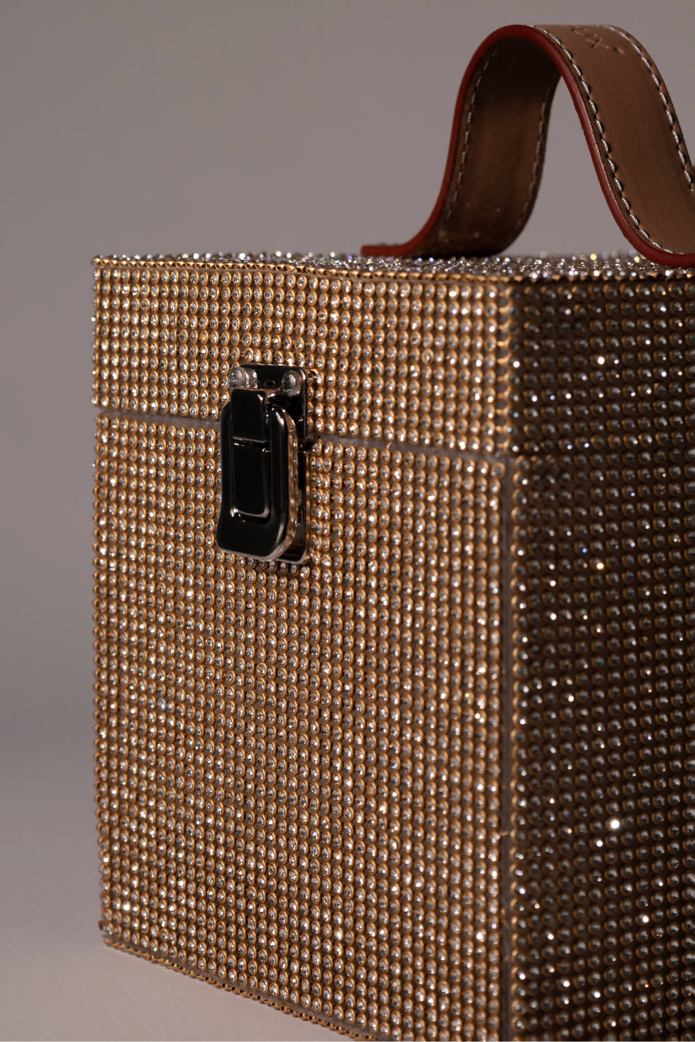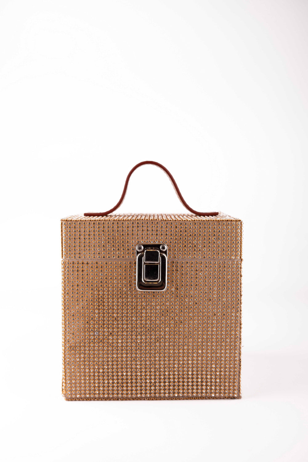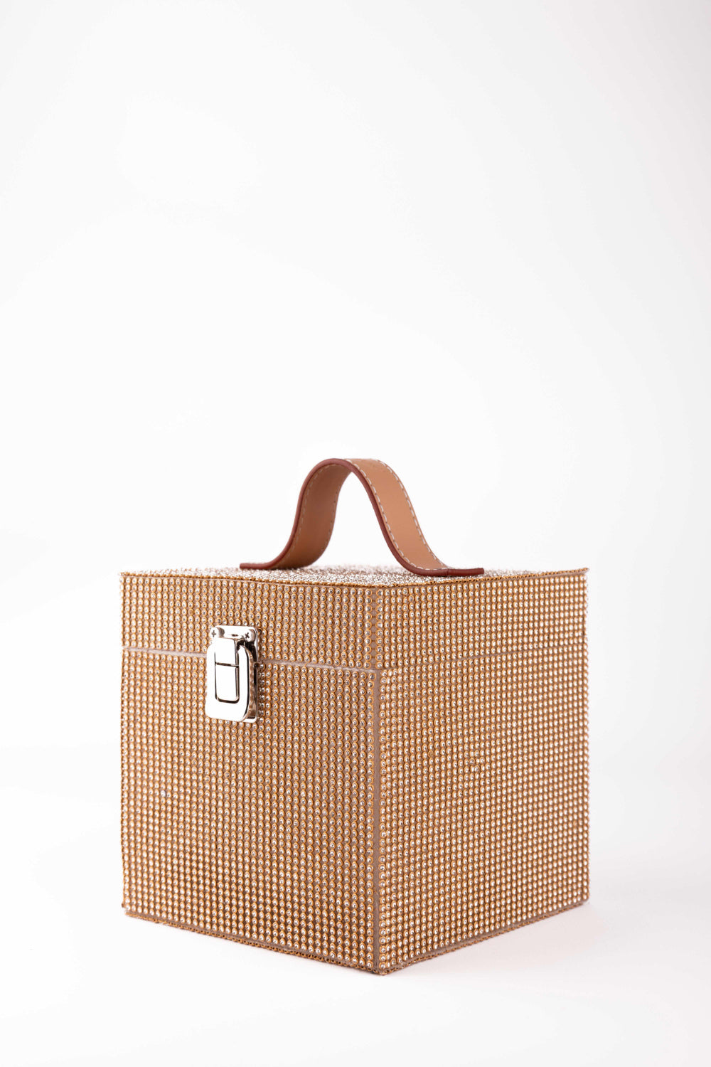 Gold Crystal Akrilik Kristal Taşlı Makyaj Çantası 15cm X 15cm X 15cm