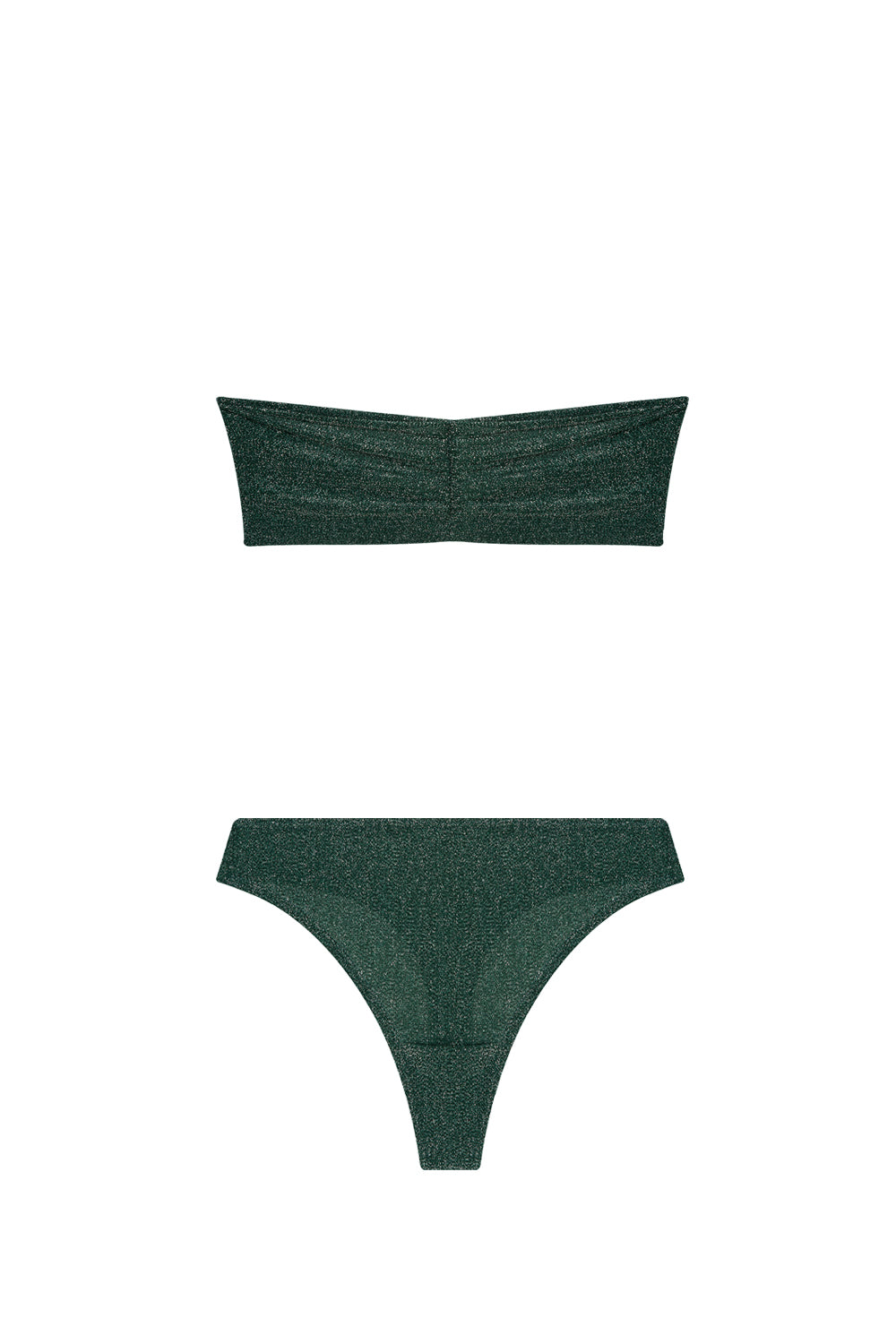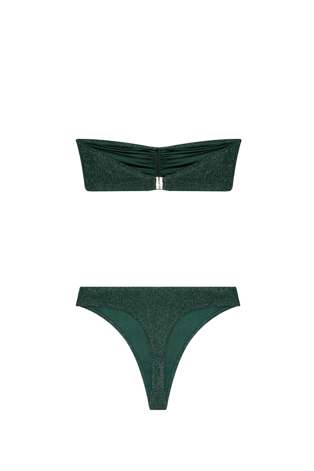 The Jane Austen strapless set accentuates elegance with its captivating green hue and shimmering texture. Immerse yourself in the allure of this unique ensemble, where style meets comfort effortlessly