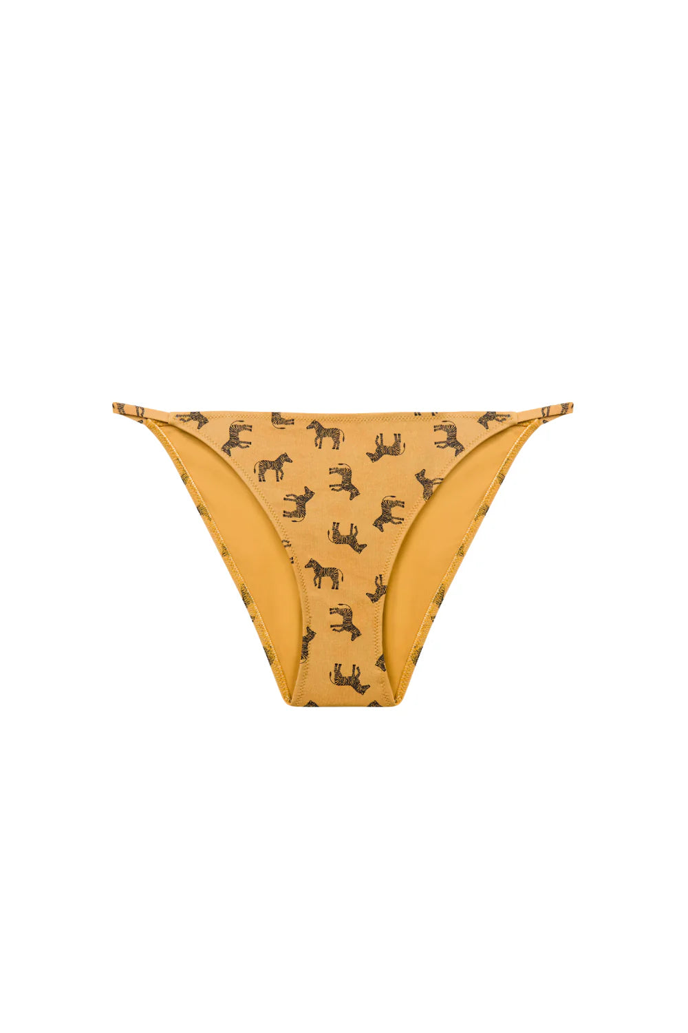 The 'Wild at Heart' bottom is a bold expression of freedom and grace. Designed with high-leg cuts and adorned with a galloping horse print, it speaks to the soul that runs free and wild. The side ties wink at a playful charm while offering a customizable fit for the fearless hearted.