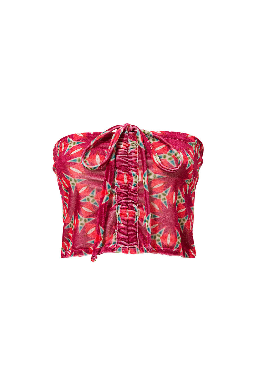 DAIQUIRI Kadife BluzDesenler, Sanatçı Defne Camcıoğlu’nun eserlerinden oluşturulmuştur,%95 Polyester %5 Elastan,Ürün, yumuşak dokulu ve zarif parlaklığa sahip kadife kumaştan üretilmiştir,Geometrik desenlerden oluşan eser, kadife kumaş'a dijital baskı yöntemi ile basılmıştır,Straplez yaka ve boyundan bağlama özellikle crop ürün, büzgü detayı ile şık bir görünüm sunmaktadır.BAKIM ÖNERİLERİ:30 derecede yıkama yapılabilir,Ağartıcı kullanılamaz,Makinede kurutmayınız.