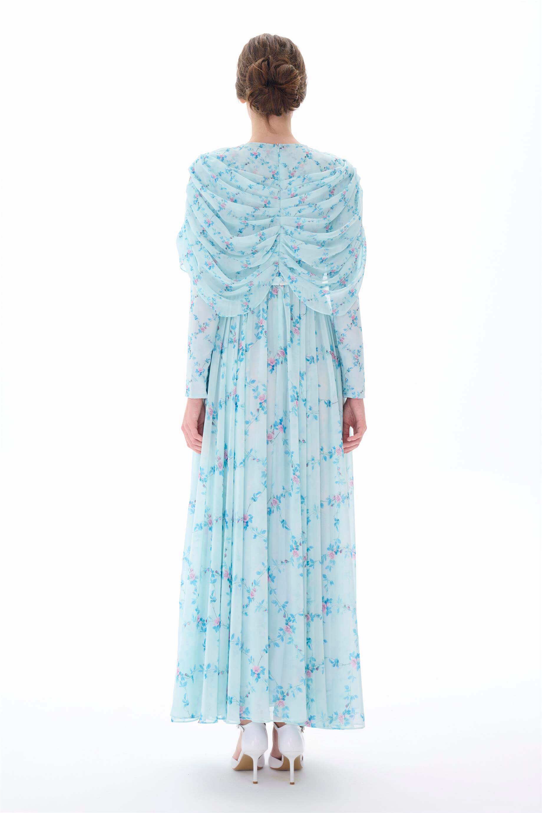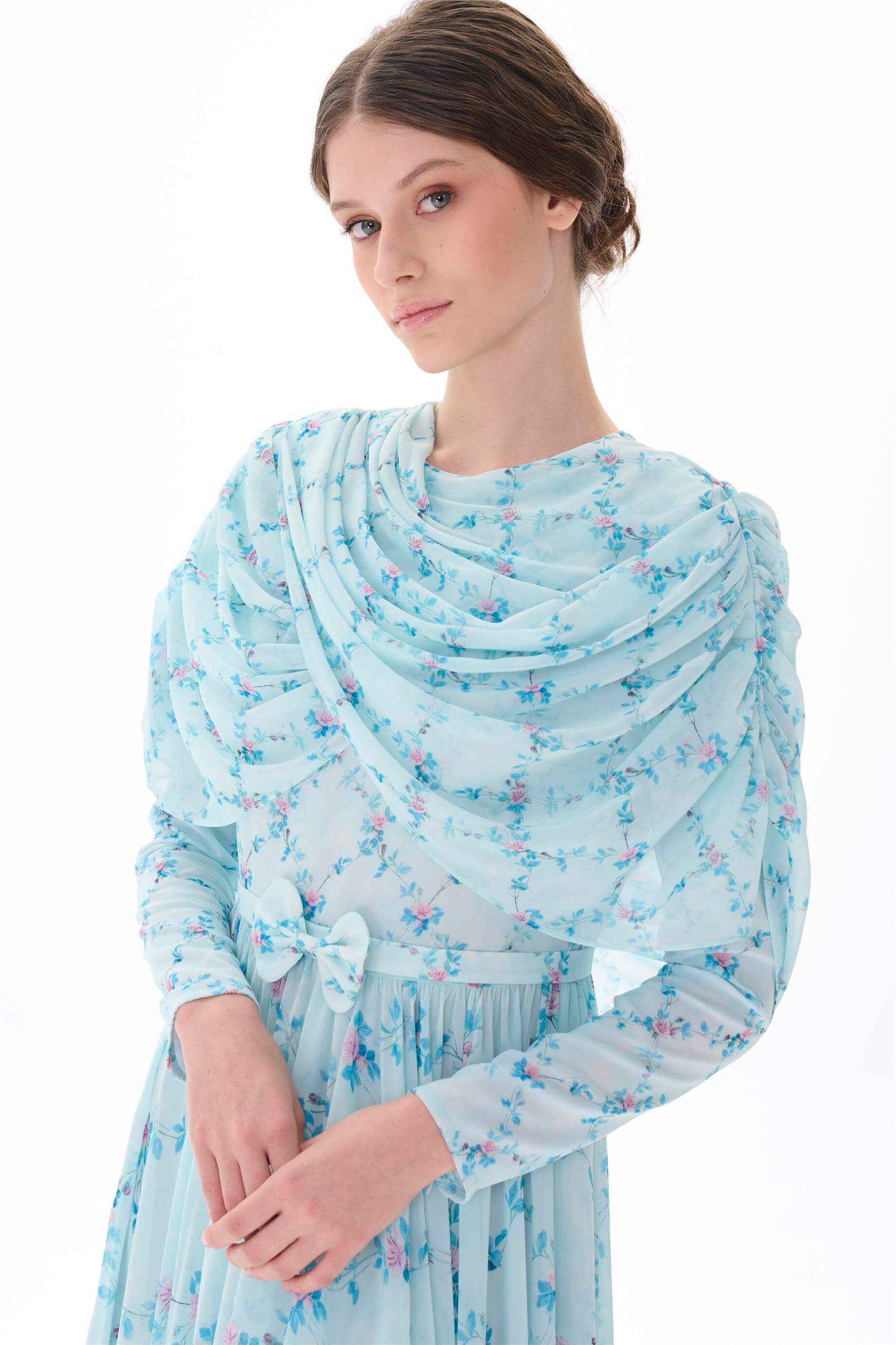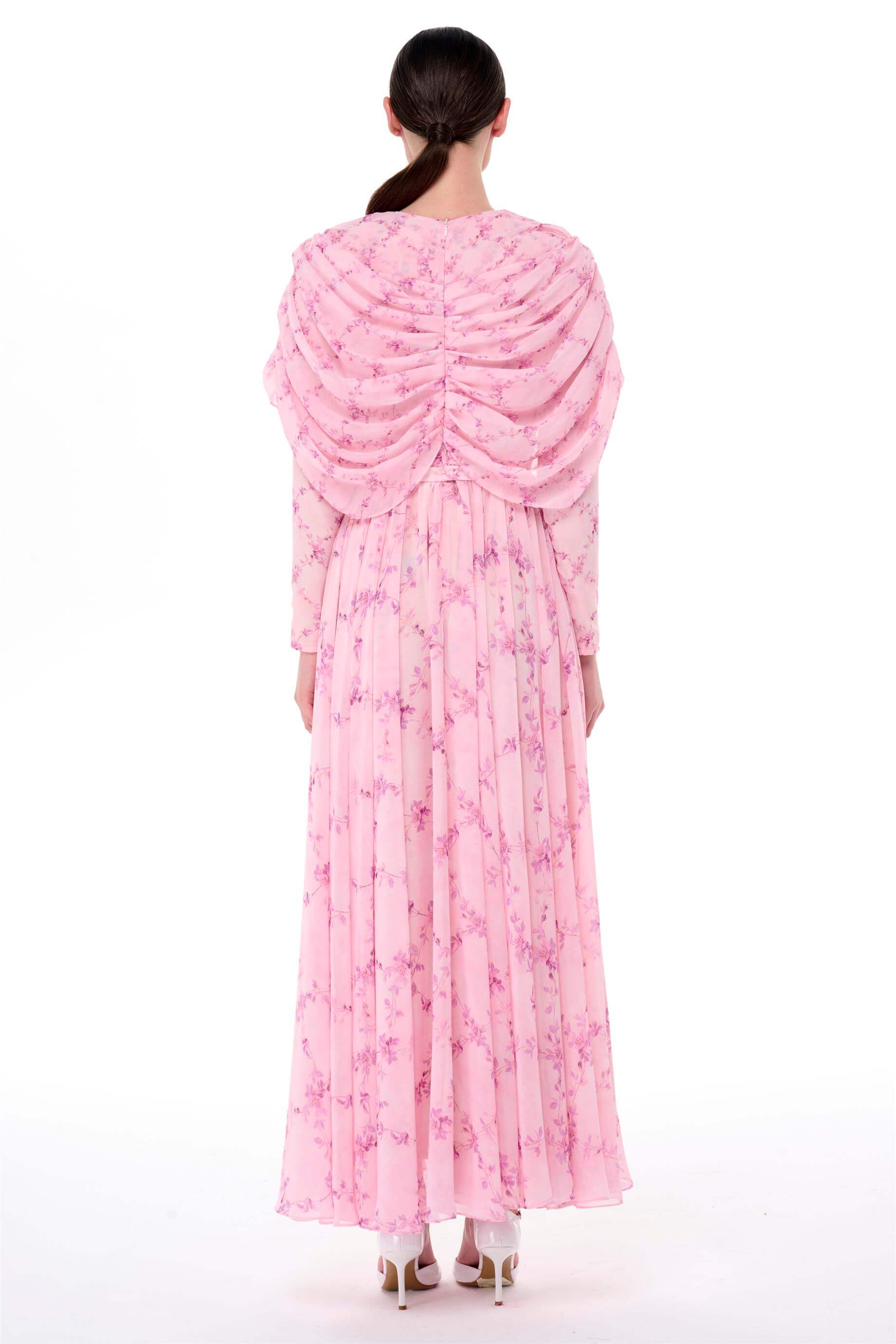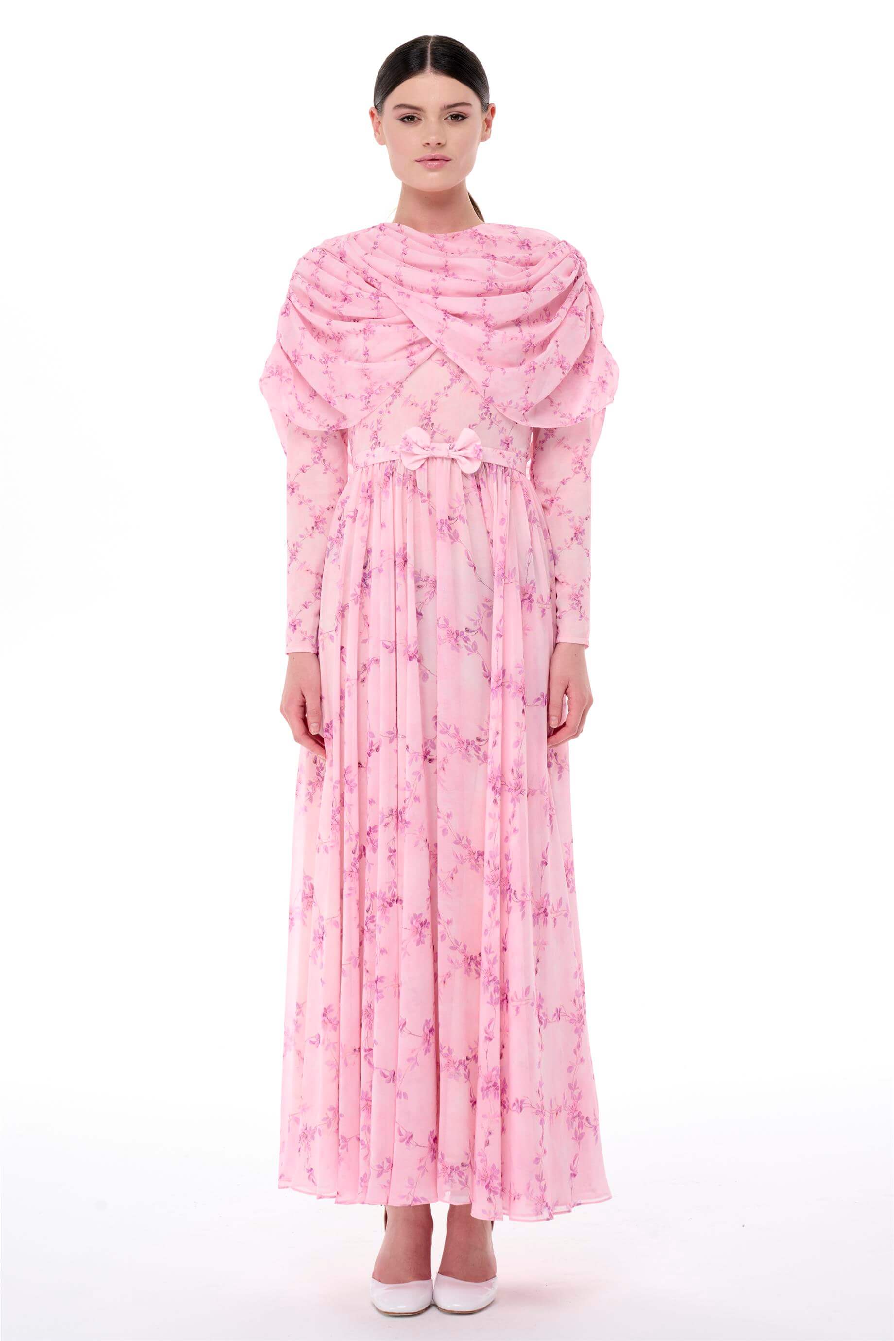 - Ürün Açıklaması: Bu büyüleyici uzun elbise her adımda kendinizi özgür hissetmenizi sağlayacak.Üst bedeni pelerin detaylı olan bu elbisenin volanlı eteği ve fiyonklu kemeri ile hafifliği ve zarafeti bir arada hissedeceksiniz.Omzundaki şal formu ve uçuş uçuş eteği tıpkı özgürlüğün sembolü olan kuşlar gibi uçuyormuş hissi verecek ve özel günlerinizde size muhteşem bir görünüm sunacak.