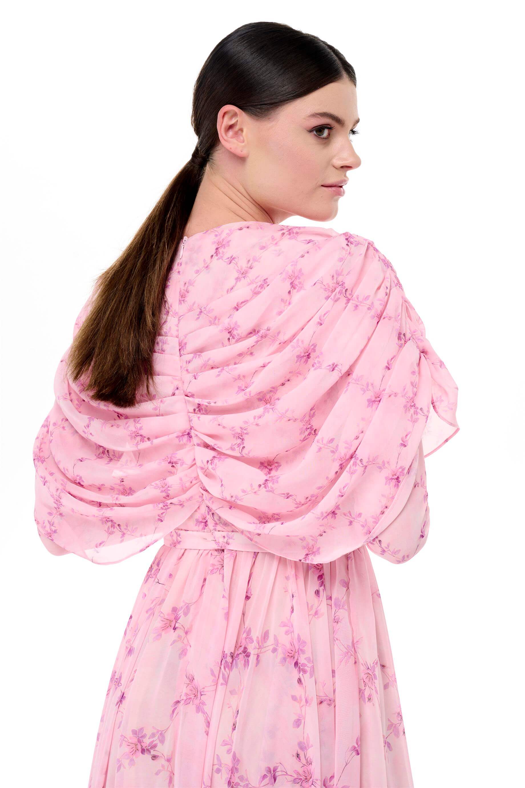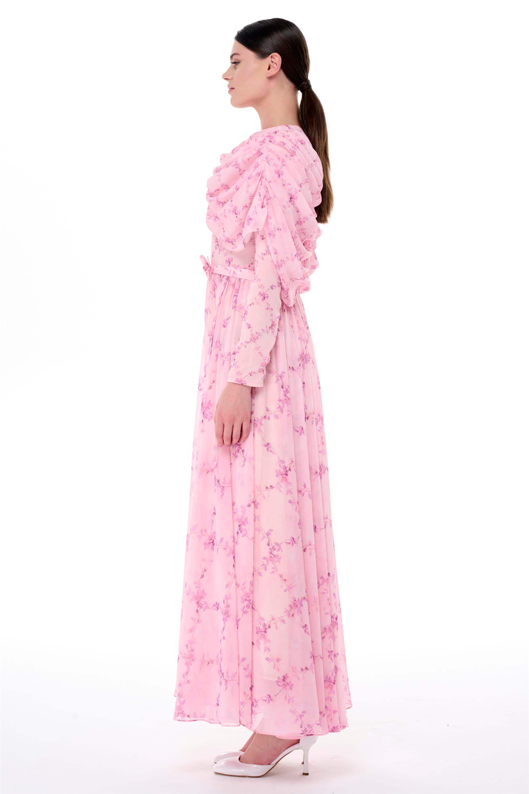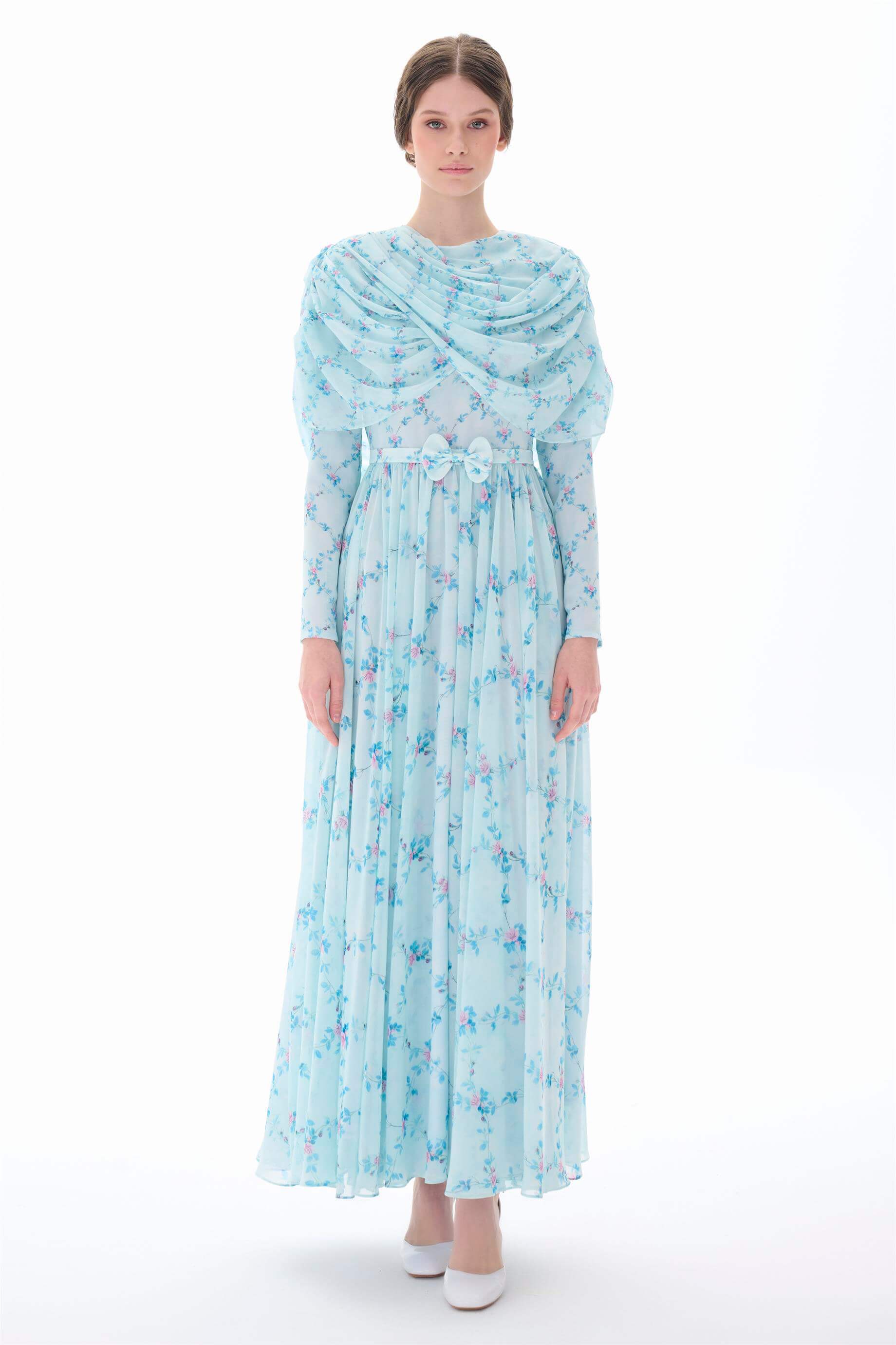 - Ürün Açıklaması: Bu büyüleyici uzun elbise her adımda kendinizi özgür hissetmenizi sağlayacak.Üst bedeni pelerin detaylı olan bu elbisenin volanlı eteği ve fiyonklu kemeri ile hafifliği ve zarafeti bir arada hissedeceksiniz.Omzundaki şal formu ve uçuş uçuş eteği tıpkı özgürlüğün sembolü olan kuşlar gibi uçuyormuş hissi verecek ve özel günlerinizde size muhteşem bir görünüm sunacak.