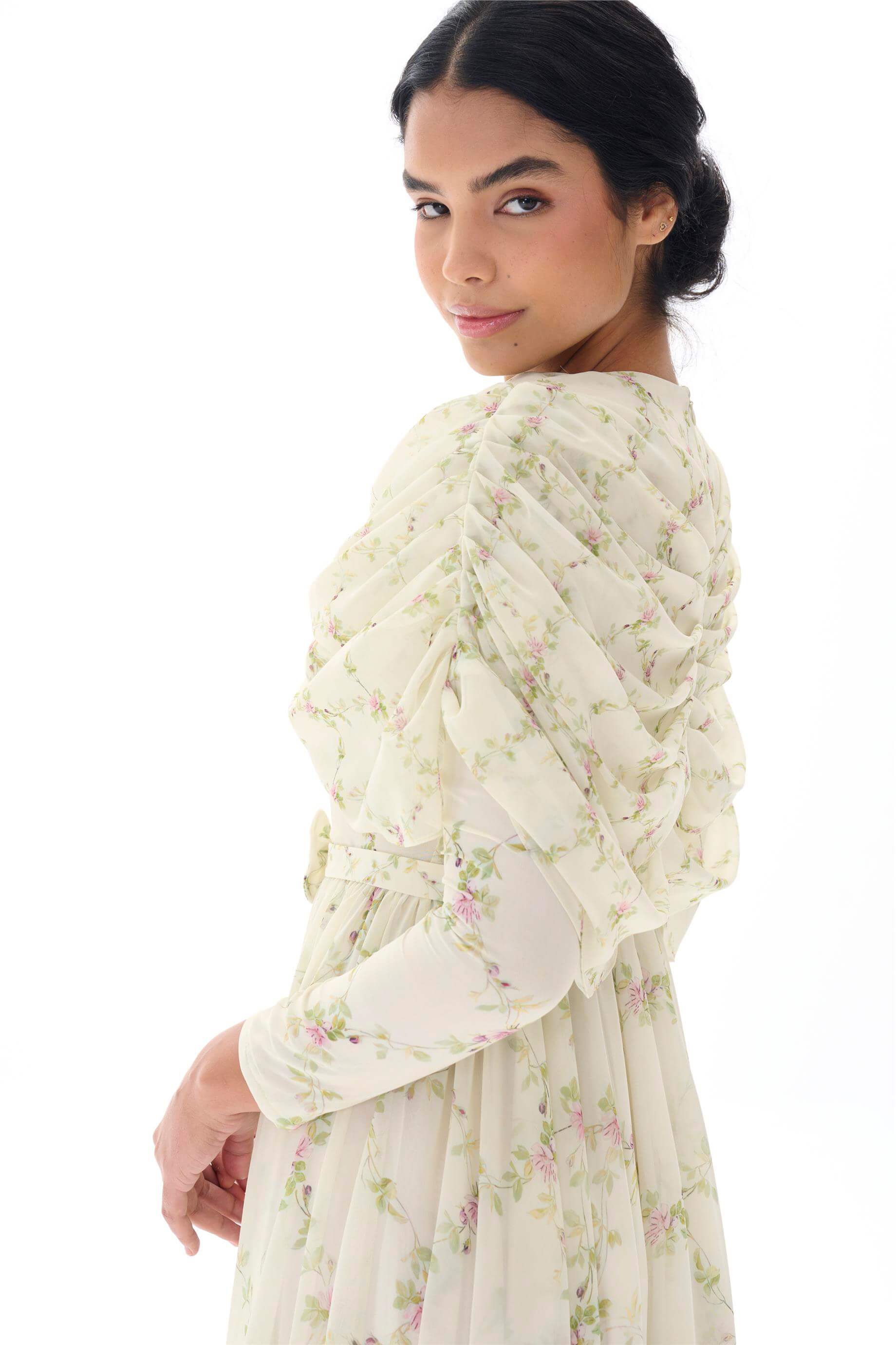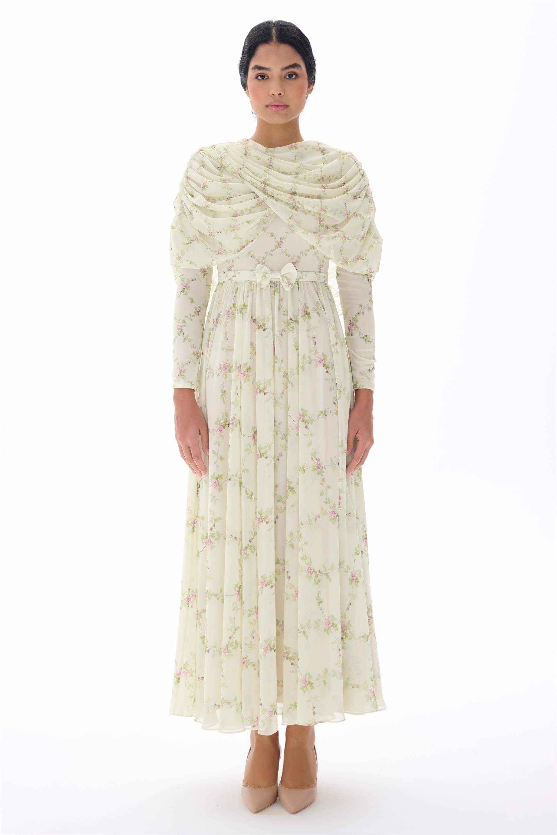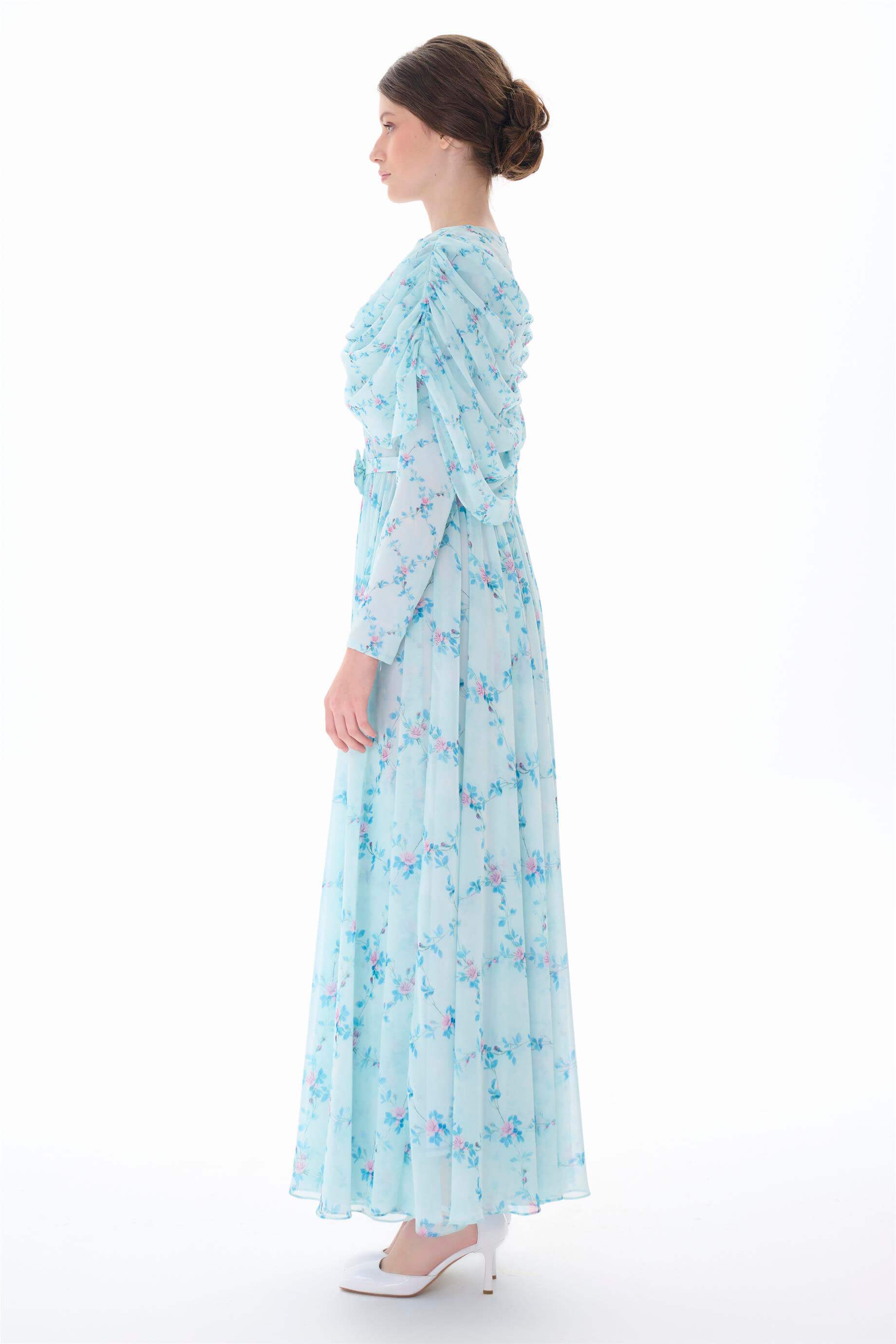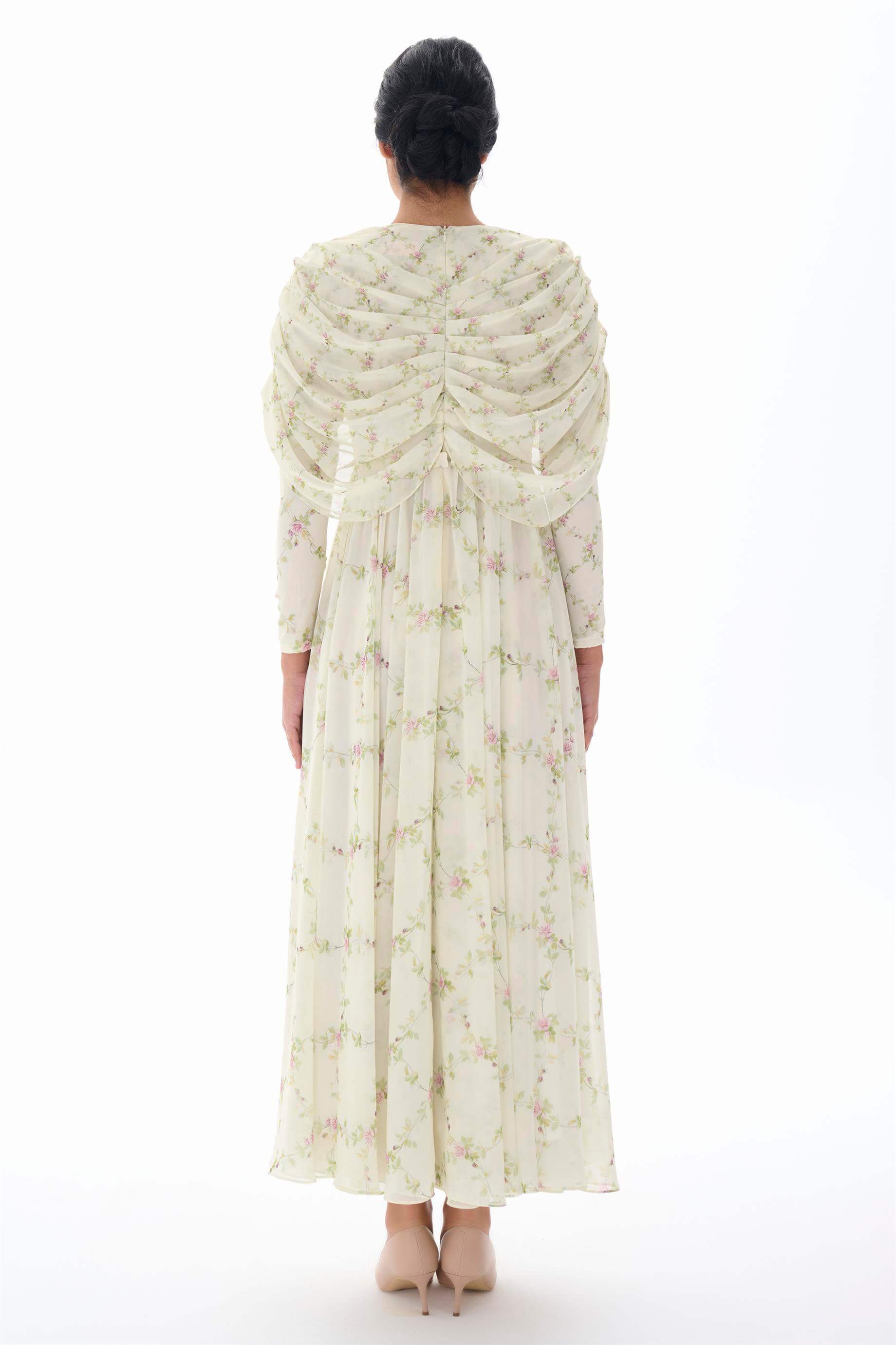 - Ürün Açıklaması: Bu büyüleyici uzun elbise her adımda kendinizi özgür hissetmenizi sağlayacak.Üst bedeni pelerin detaylı olan bu elbisenin volanlı eteği ve fiyonklu kemeri ile hafifliği ve zarafeti bir arada hissedeceksiniz.Omzundaki şal formu ve uçuş uçuş eteği tıpkı özgürlüğün sembolü olan kuşlar gibi uçuyormuş hissi verecek ve özel günlerinizde size muhteşem bir görünüm sunacak.