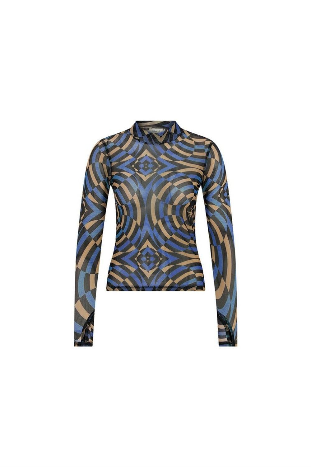 Nora Geometric Printed Blue Tulle Bodysuit