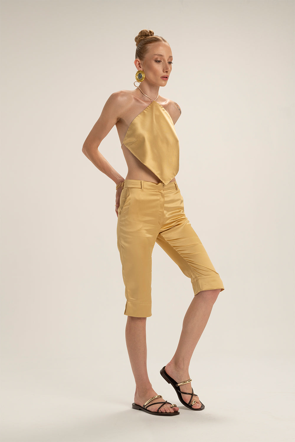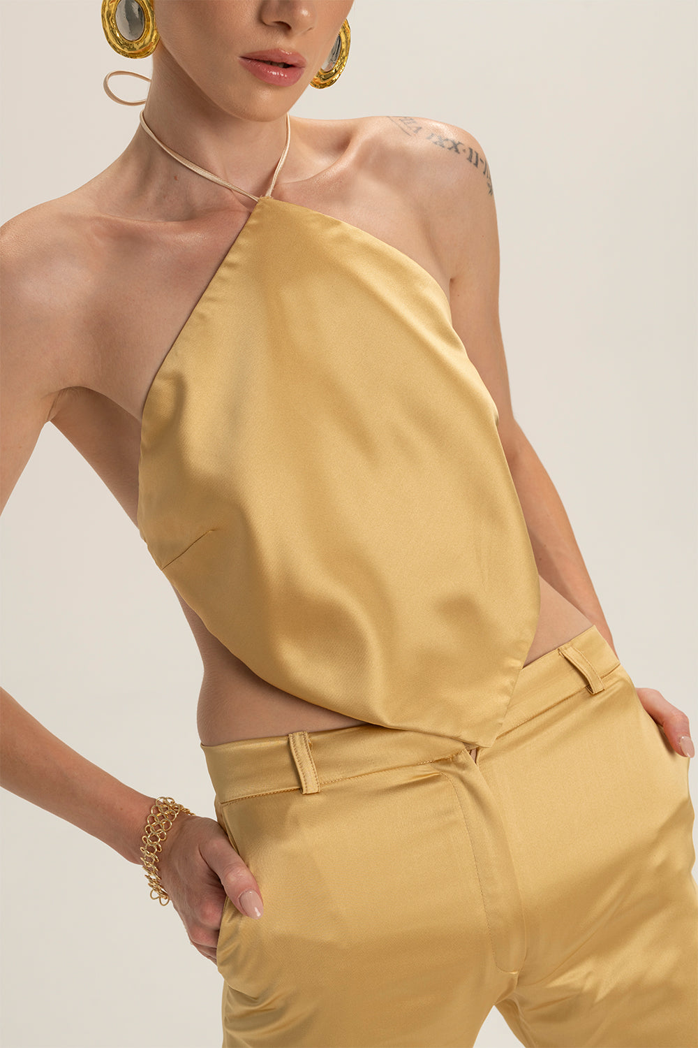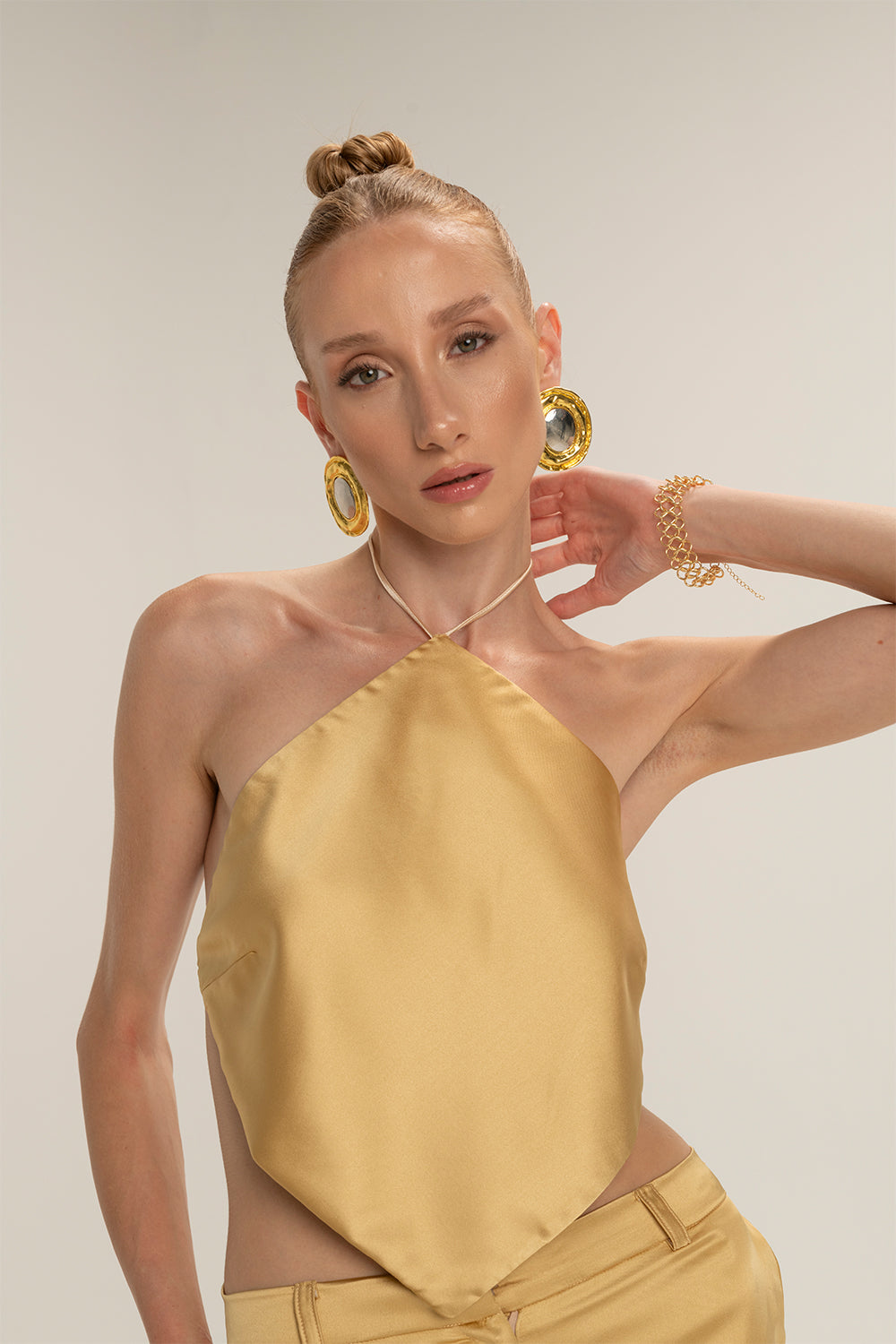 Üçgen kesim, sırtı bağlama detaylı saten üst.