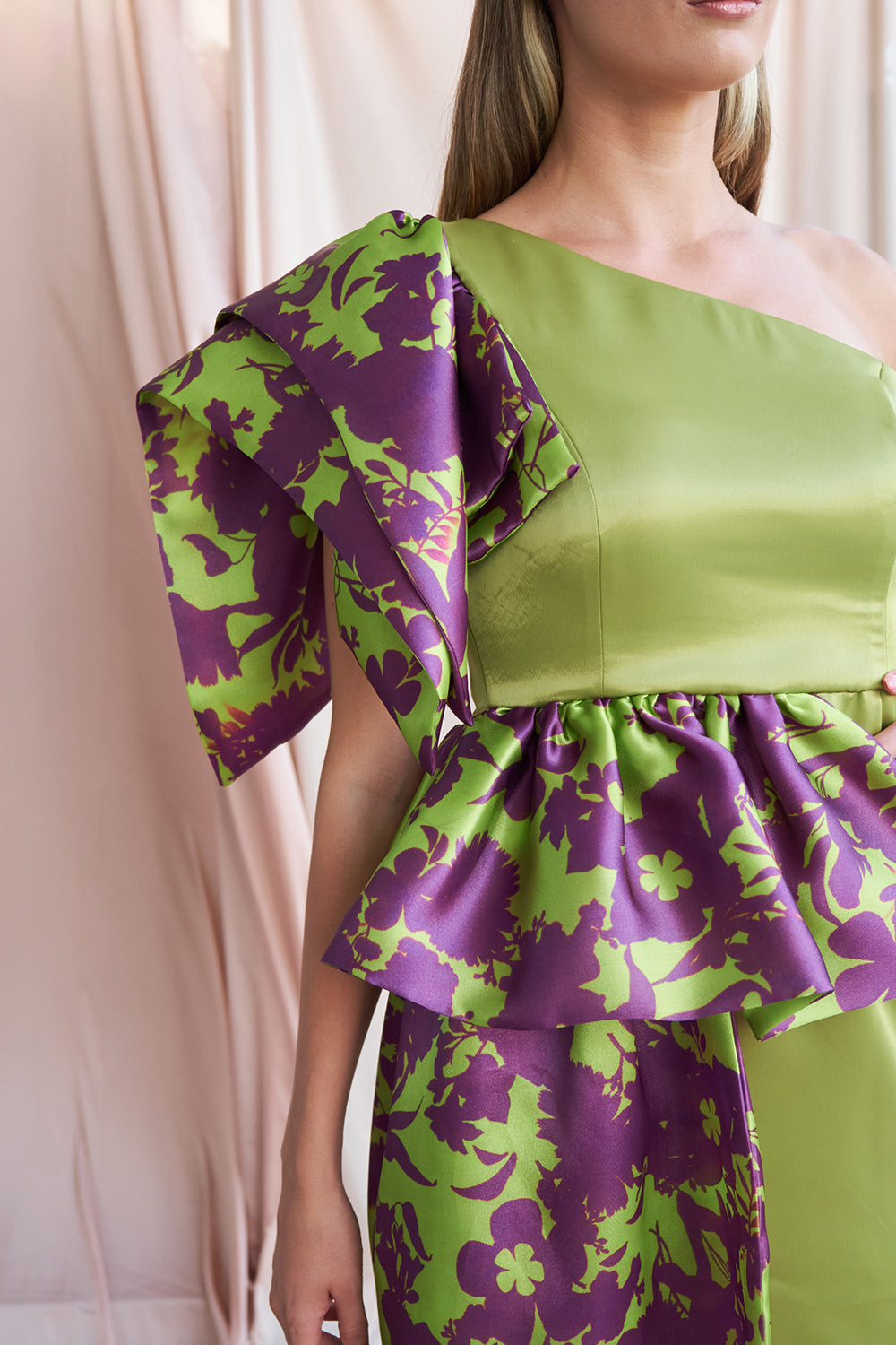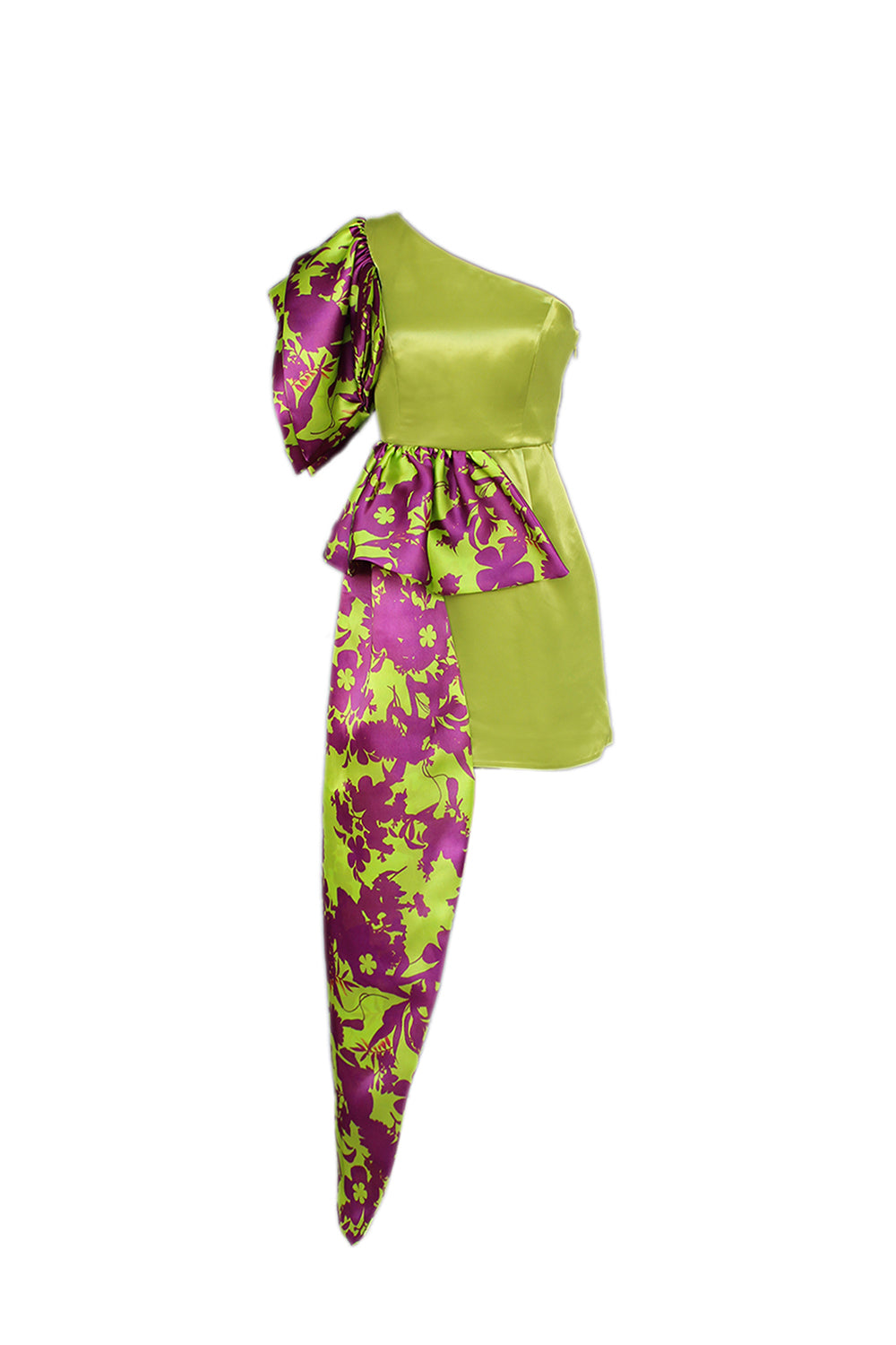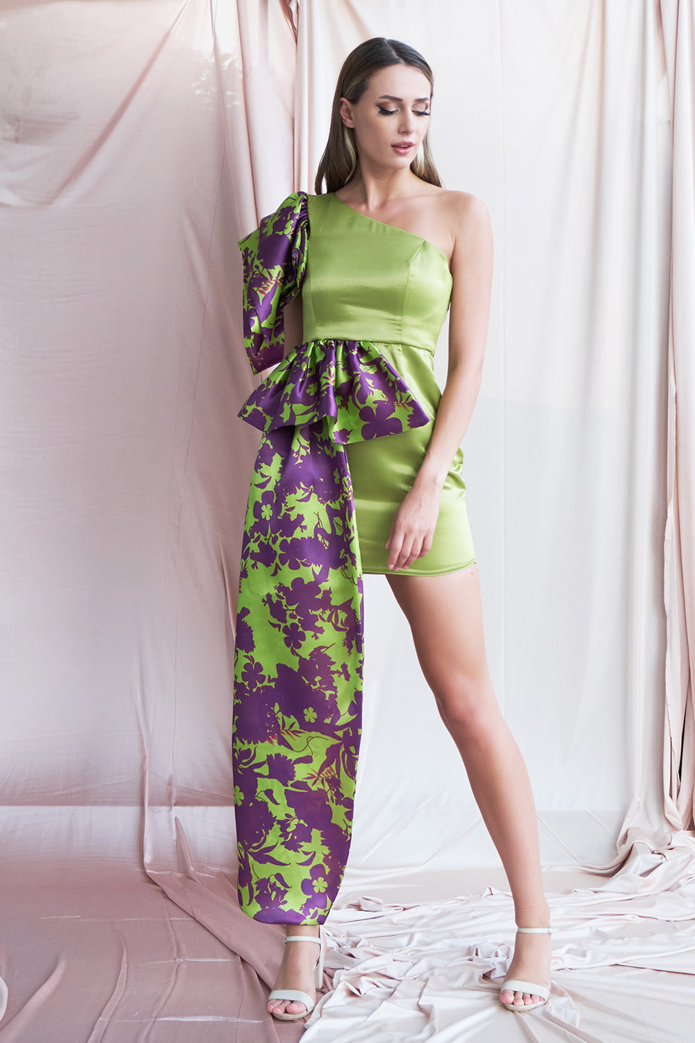 Tek Omuzlu Yeşil Mini Abiye Lora