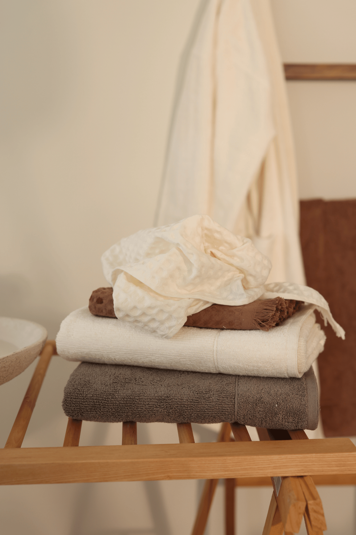 Zamansız sadelik ve doğallığın buluştuğu özel tasarım, %100 saf Türk pamuklarından üretilmiştir. Waffle dokusuyla hafif, nefes alabilen ve yüksek emiciliğe sahip olan Aura, günün her anında ferah bir konfor sunar.