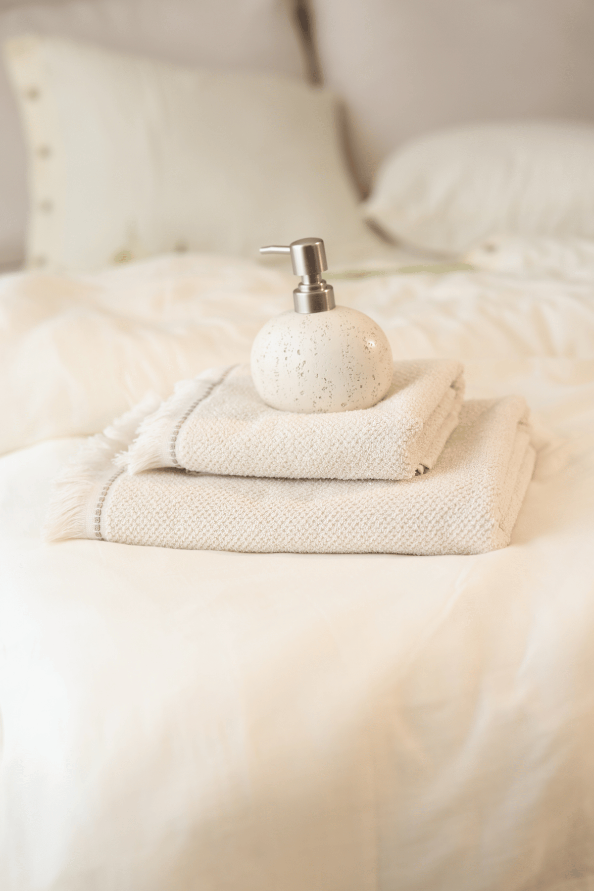 Doğal travertenden ilham alan bu yumuşacık pirinç dokulu ürün, banyonuza sıcak ve şık bir hava katar. Her kullanımda sizi dinginlik ve huzur dolu bir ana taşır.