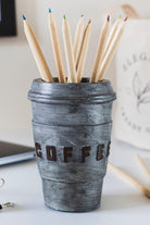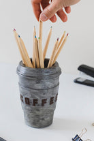Our product is produced as a decorative pen holder and is not suitable for use as a coffee cup.