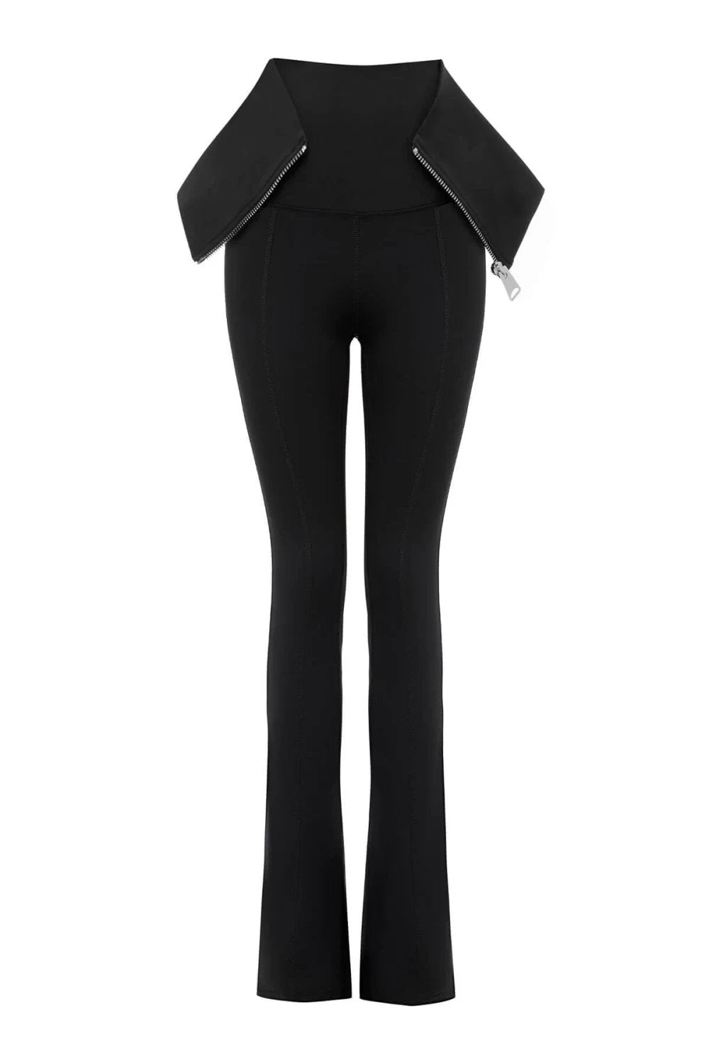 Modern tasarımıyla öne çıkan yüksek bel, arkadan açılır fermuarlı, korseli, push up etkili likralı flare paça tayt, vücut hatlarını toparlar ve feminen bir siluet sunar. Korseli detay bel bölgesini desteklerken, push up etkisi kalçaları kaldırır. Arkadan açılır fermuar detayı kullanım kolaylığı sağlar ve modern bir dokunuş katar.
