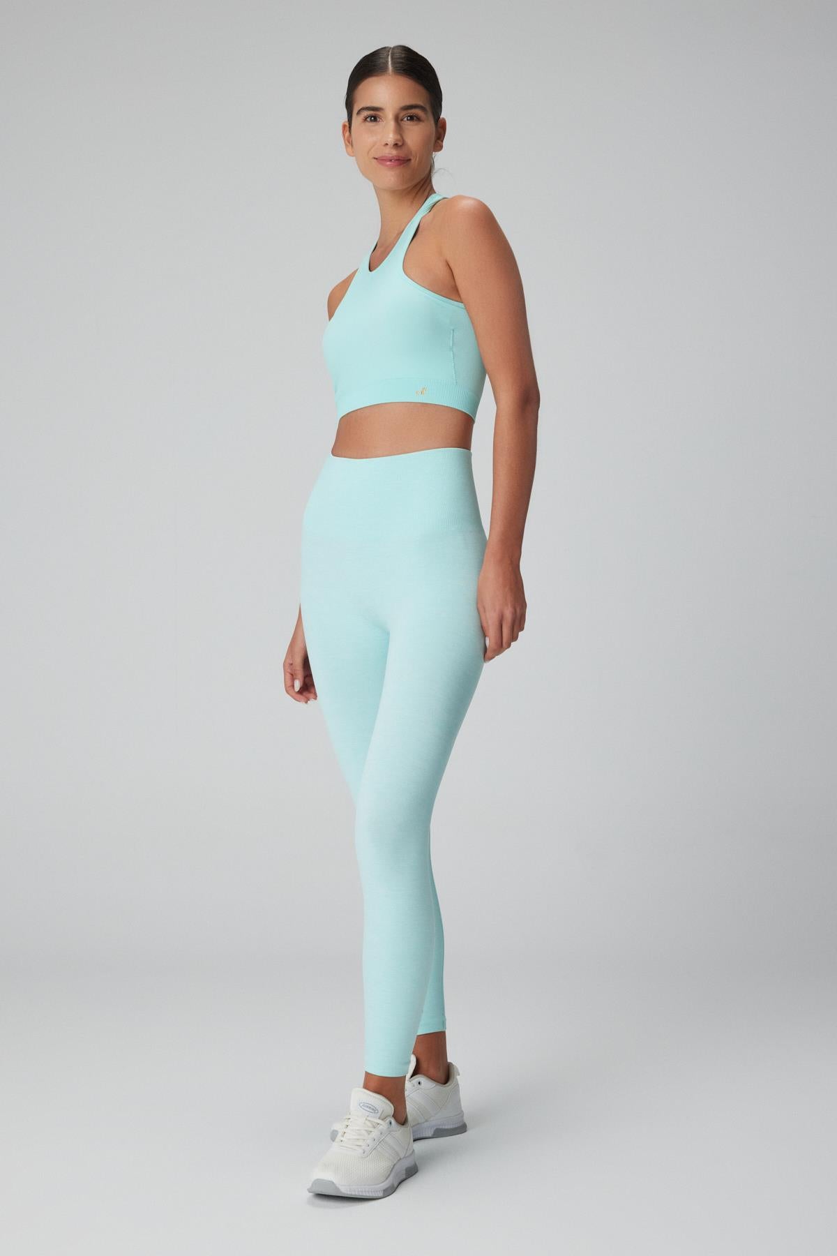 Palmi Melanj Desenli Yüksek Bel Tayt Turkuaz
