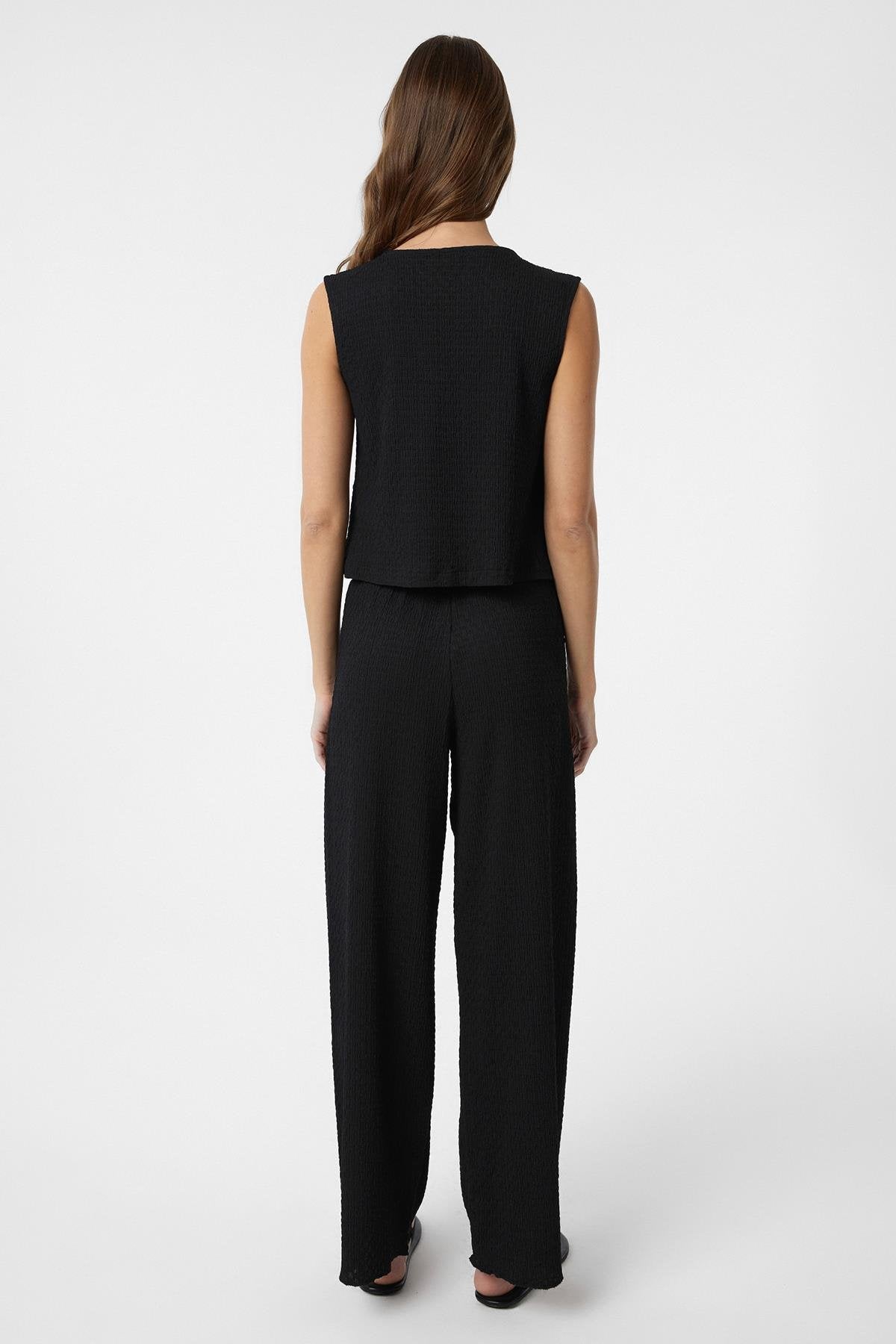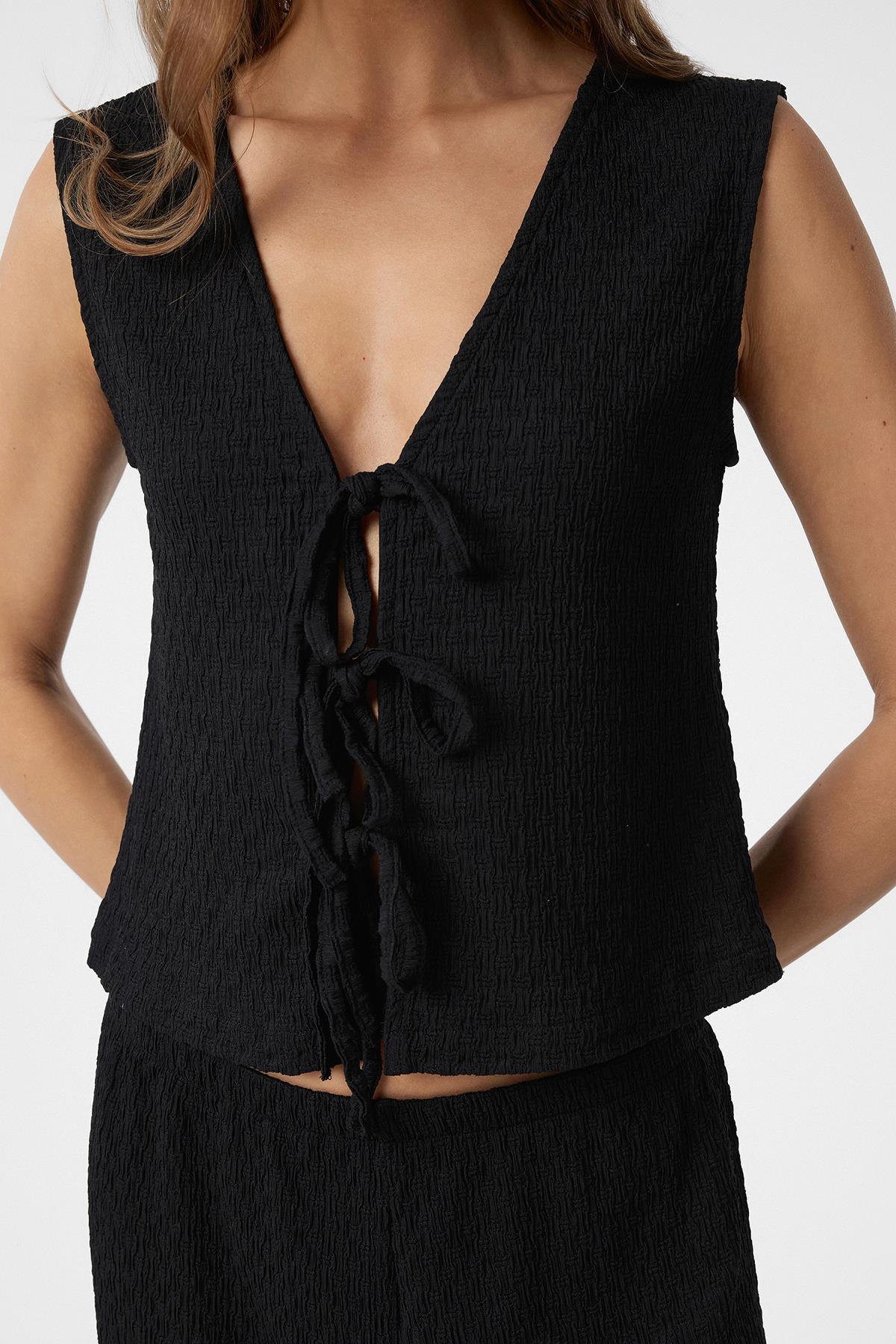 Siyah Bağ Detaylı Dokulu Kadın Takım