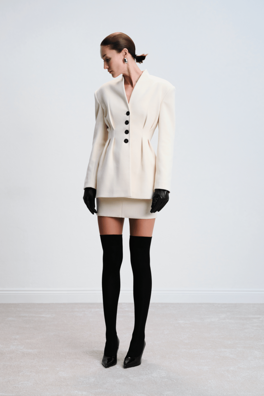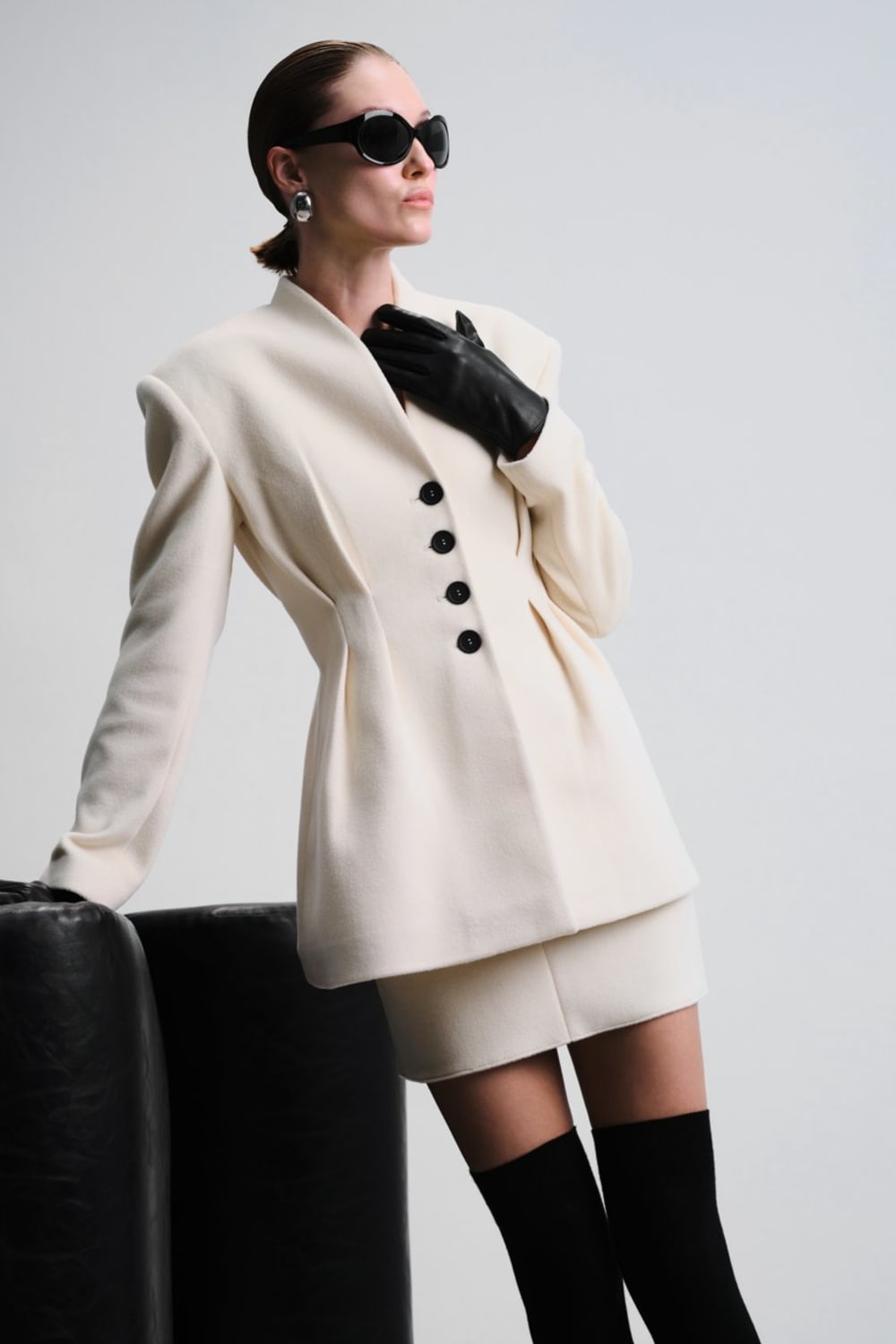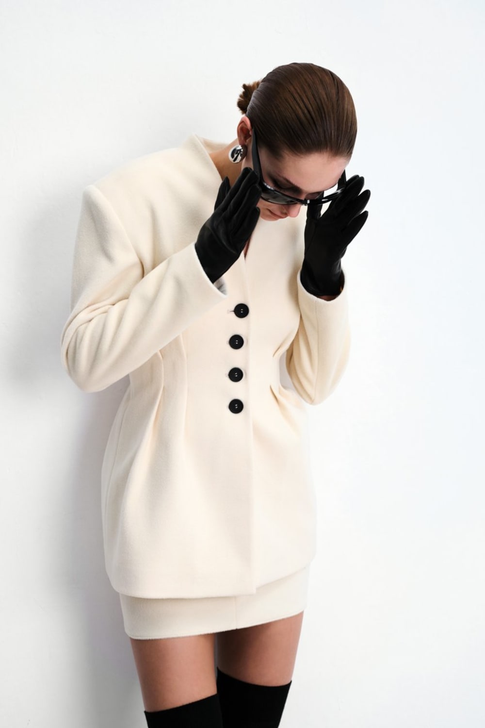 Yün Görünümlü Blazer ve Mini Etek Takım