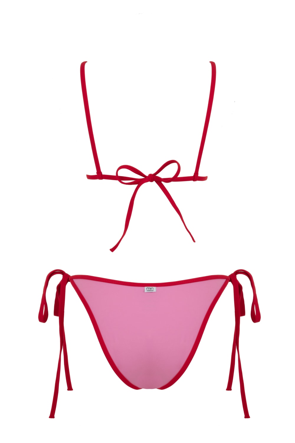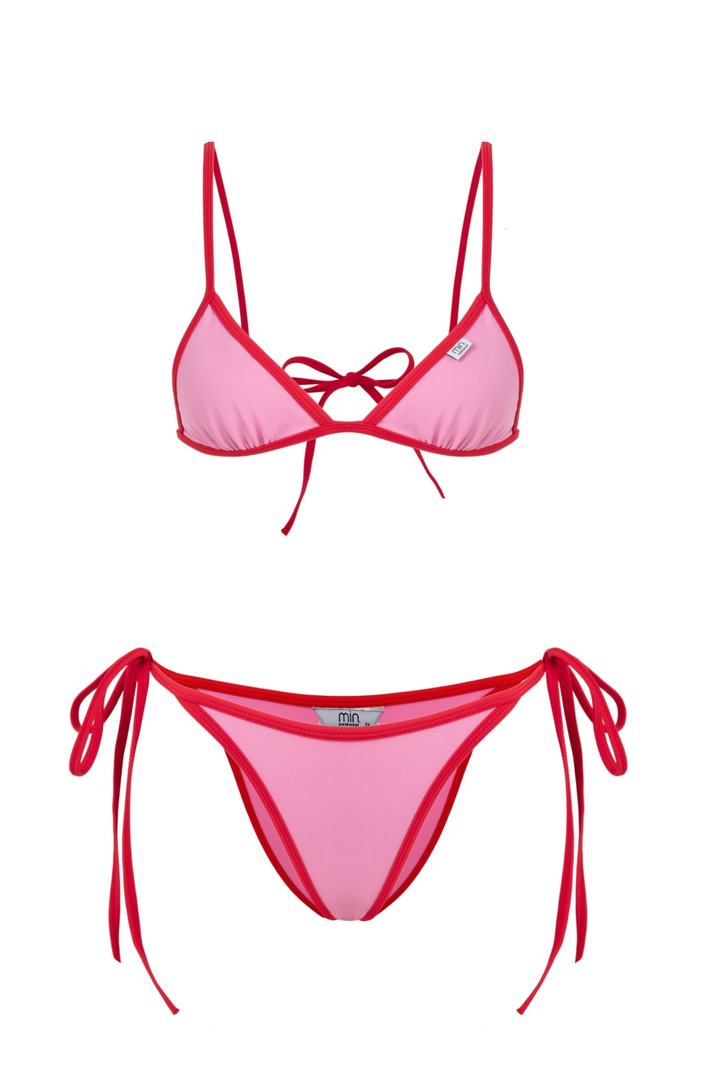 Modern kesim bikini altı ile daha estetik bir görünüm sağlarken, yanındaki bağlamalı detayıyla tarzına büyülü bir hava katar. Min. Swimwear Everytime Pembe Üçgen Bikini Takımı ile bu yazın tadını çıkarın!