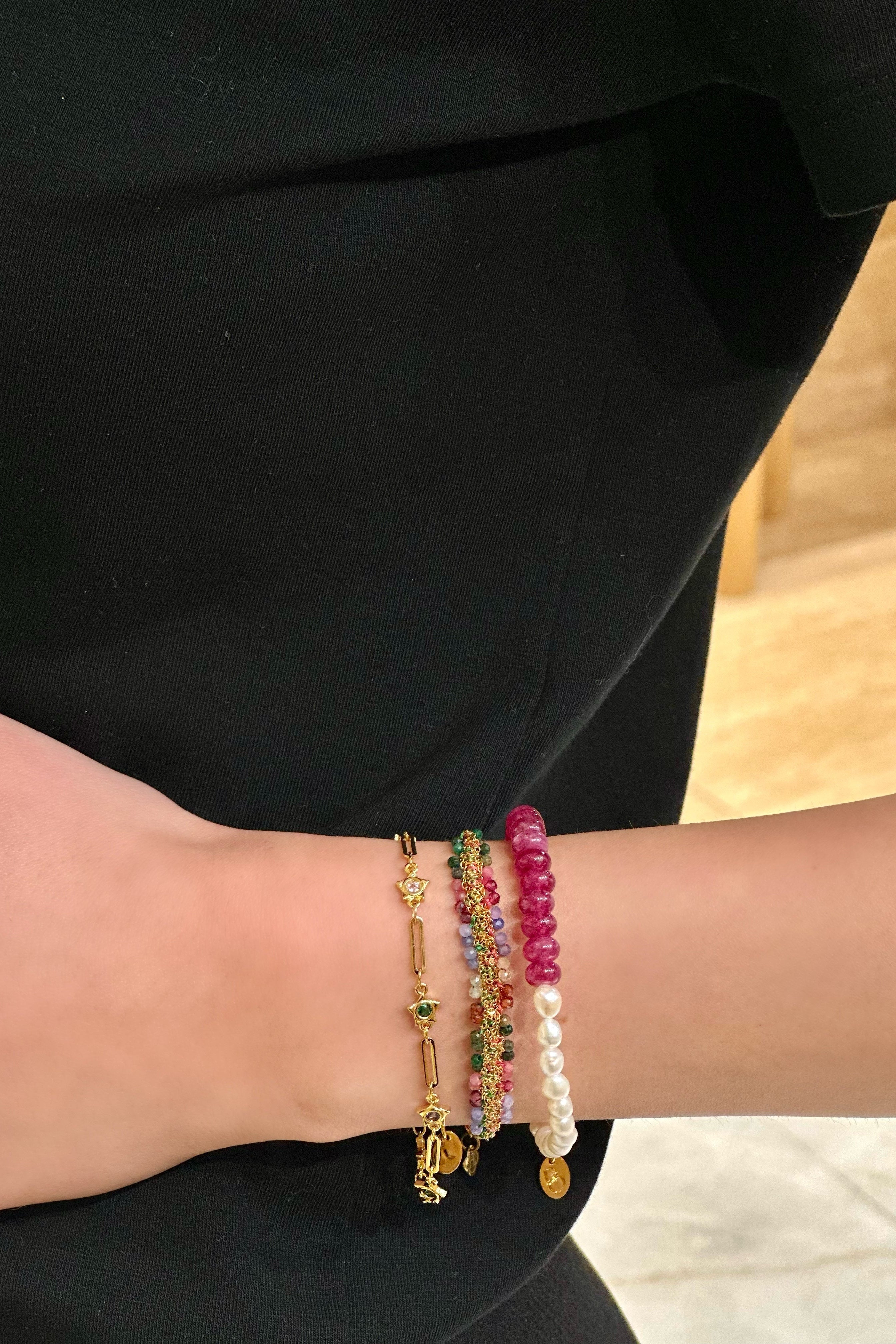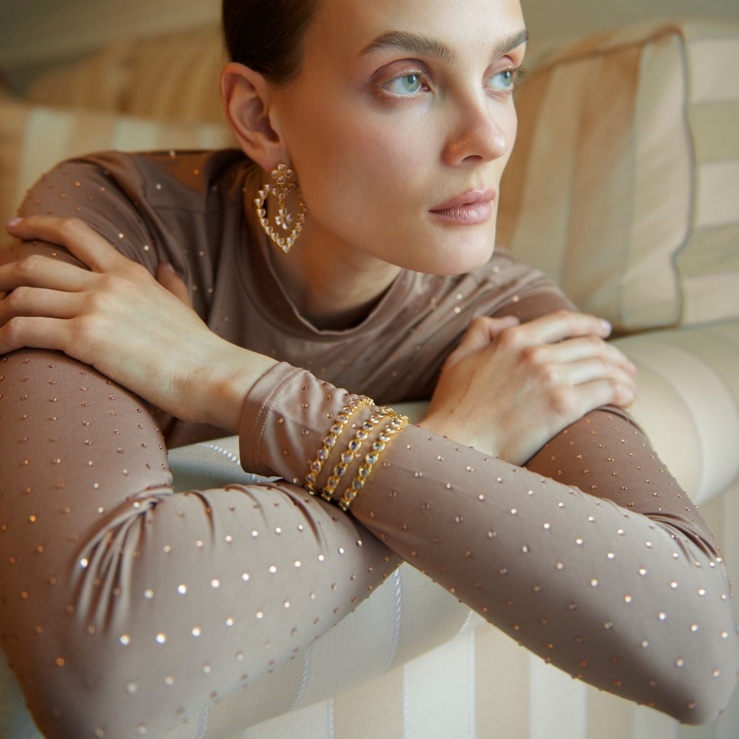 - Taşlı Bileklikler: Renkli ya da transparan taş detaylarıyla zenginleştirilen bu modeller, hem gündüz hem gece kombinlerinin vazgeçilmezidir.
