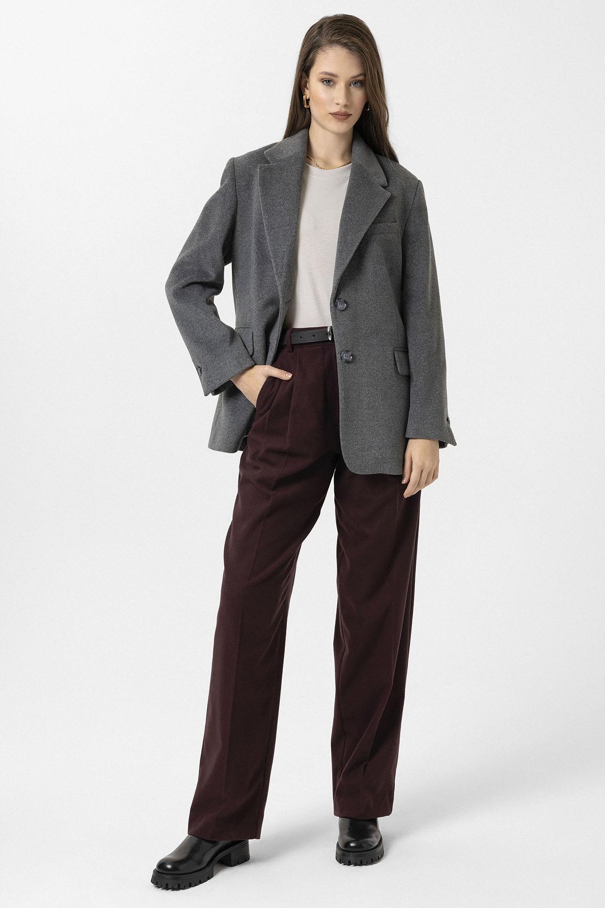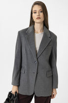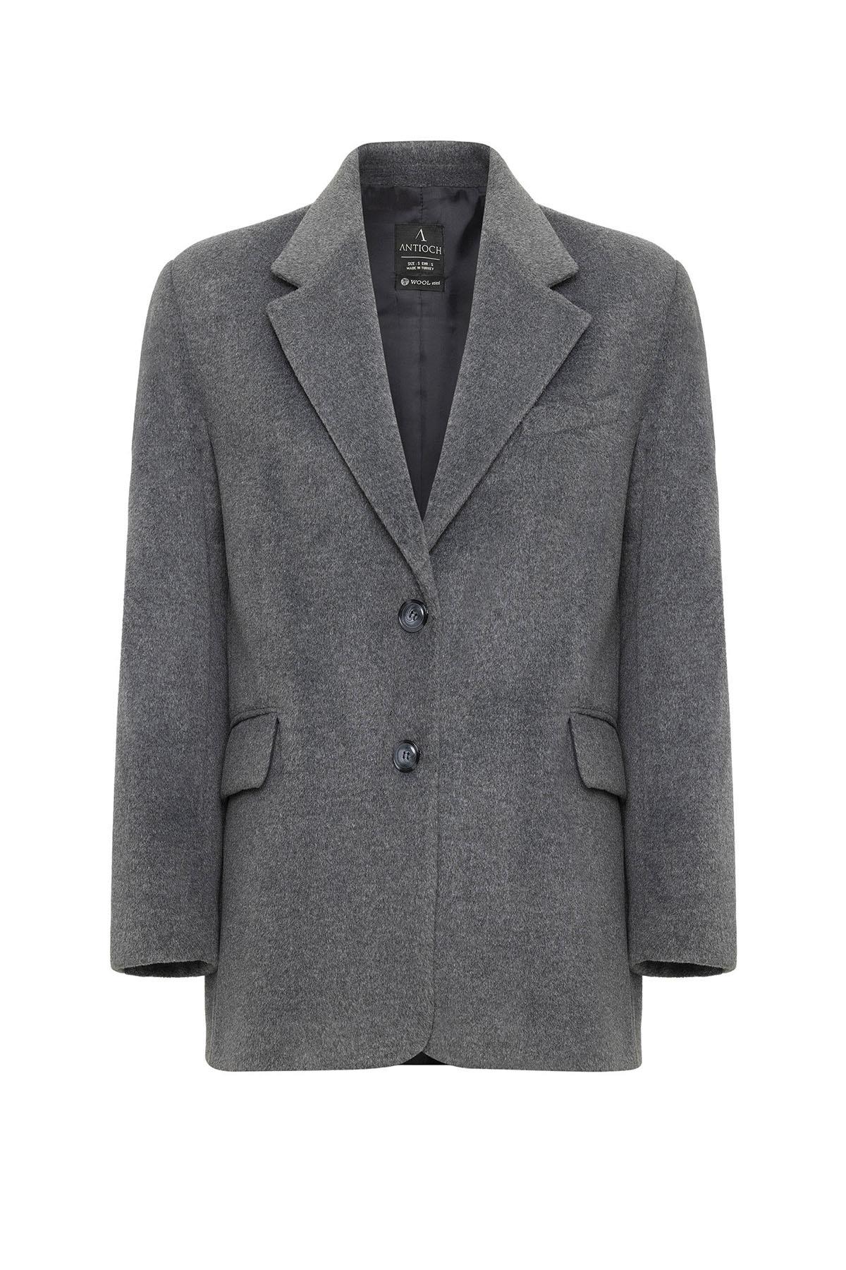 Antrasit Kadın Yün Karışımlı Blazer Ceket