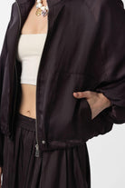 Kahve Dik Yaka İNce Kadın Bomber Ceket