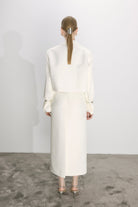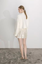 Boxy Cropped Ceket, mat saten dokusu ve vanilya rengiyle zarif bir görünüm sunuyor. Oversize kesimi ve vatka ile yapılandırılmış formu, Aveline Etek ile mükemmel uyum sağlayarak her etkinlikte zahmetsiz sofistike bir stil vadediyor.