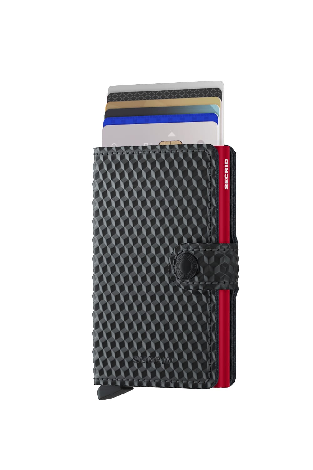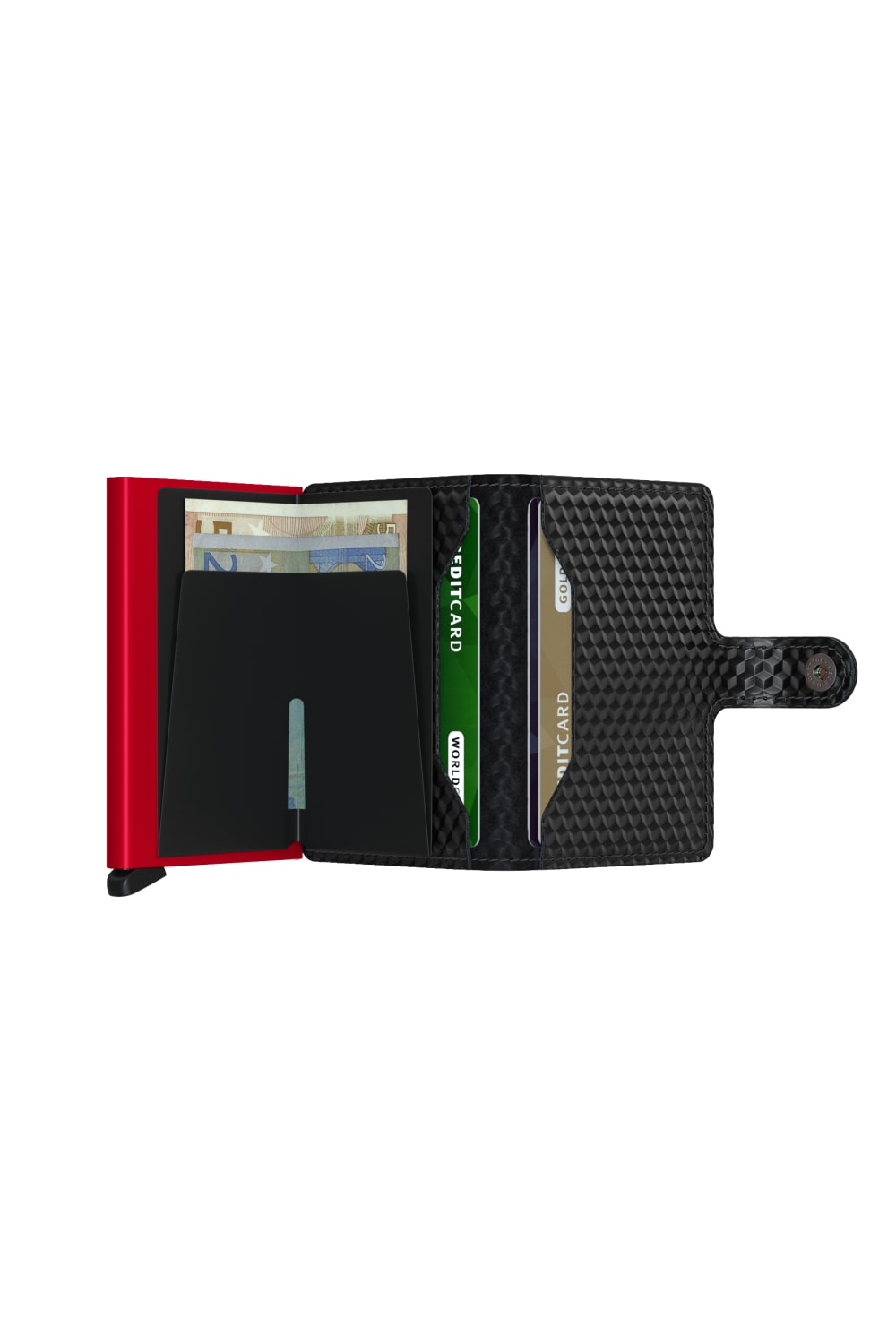 Secrid Miniwallet, çok fonksiyonlu güvenli bir cüzdandır. Cardprotector'daki kartlara ek olarak iç kısım birkaç kart, kağıt para, makbuz, kartvizit ve biraz bozuk para için alan sunar. Miniwallet çıtçıtlı kapatması nedeniyle taşıması kolaydır. Kabartmalı 4 kart veya 6 düz kart kapasitesi vardır.