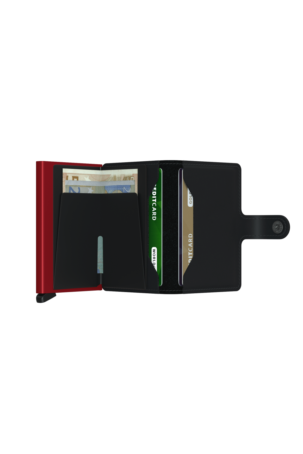 Secrid Miniwallet, çok fonksiyonlu güvenli bir cüzdandır. Cardprotector'daki kartlara ek olarak iç kısım birkaç kart, kağıt para, makbuz, kartvizit ve biraz bozuk para için alan sunar. Miniwallet çıtçıtlı kapatması nedeniyle taşıması kolaydır. Kabartmalı 4 kart veya 6 düz kart kapasitesi vardır.