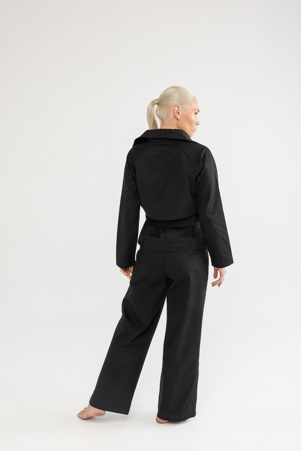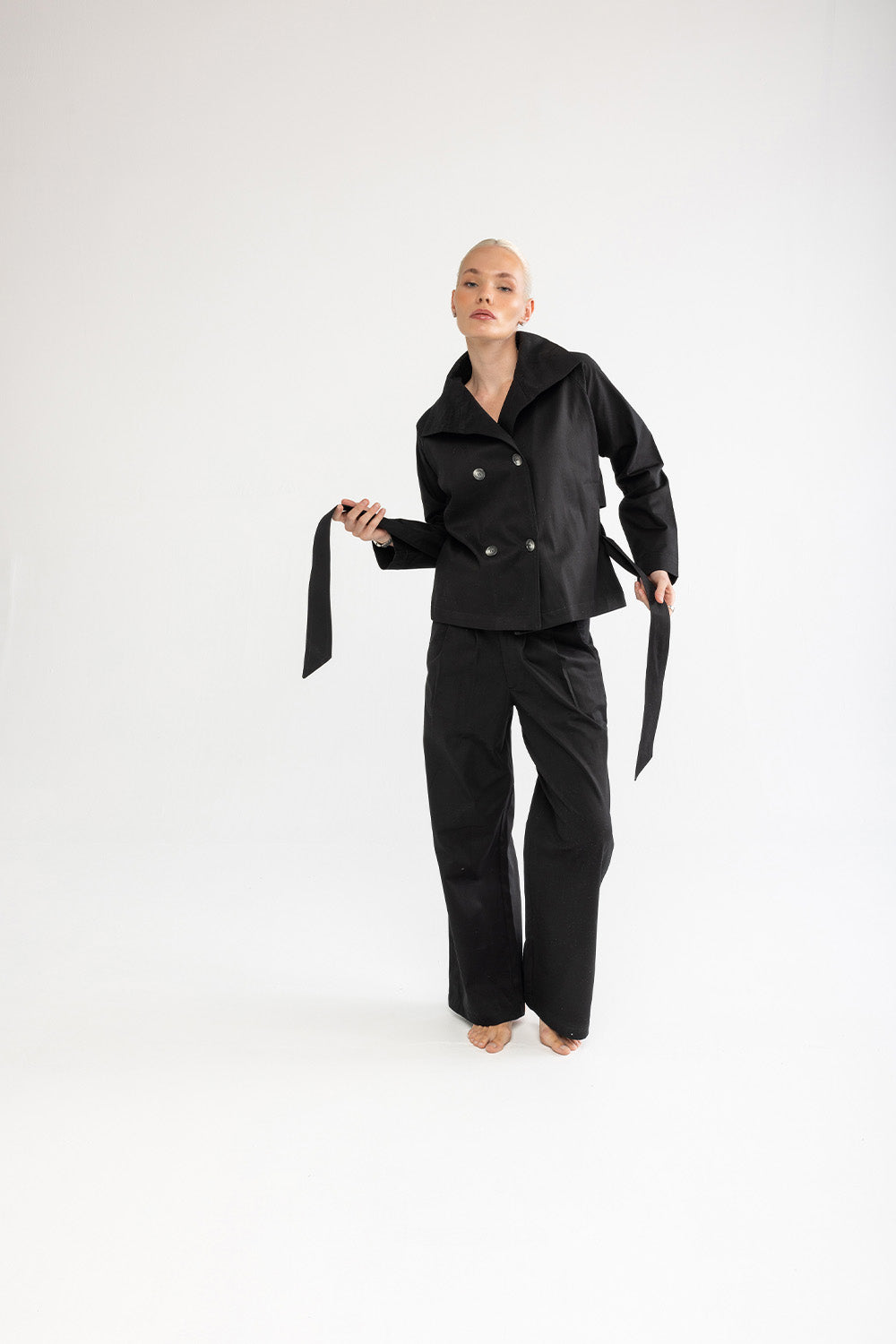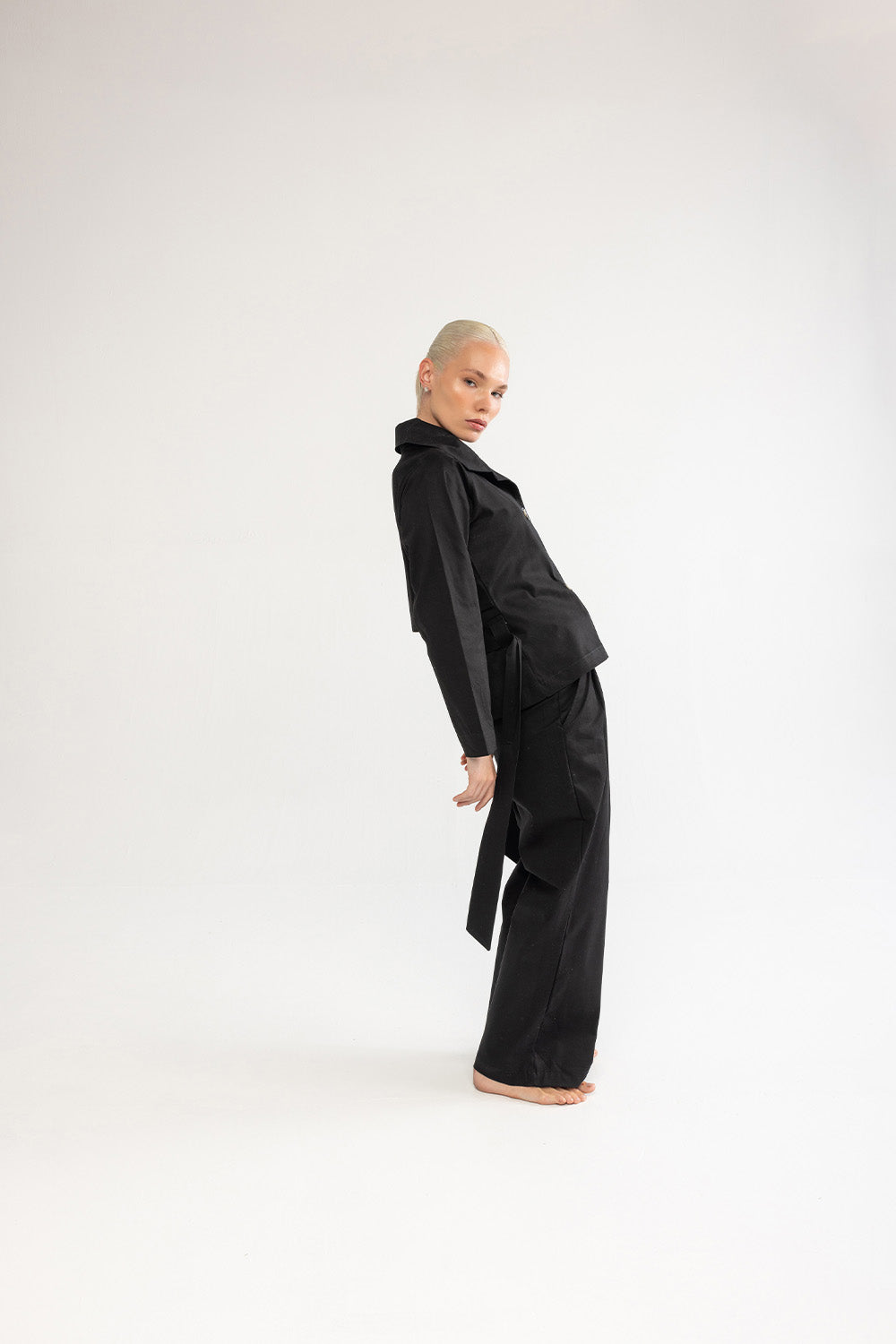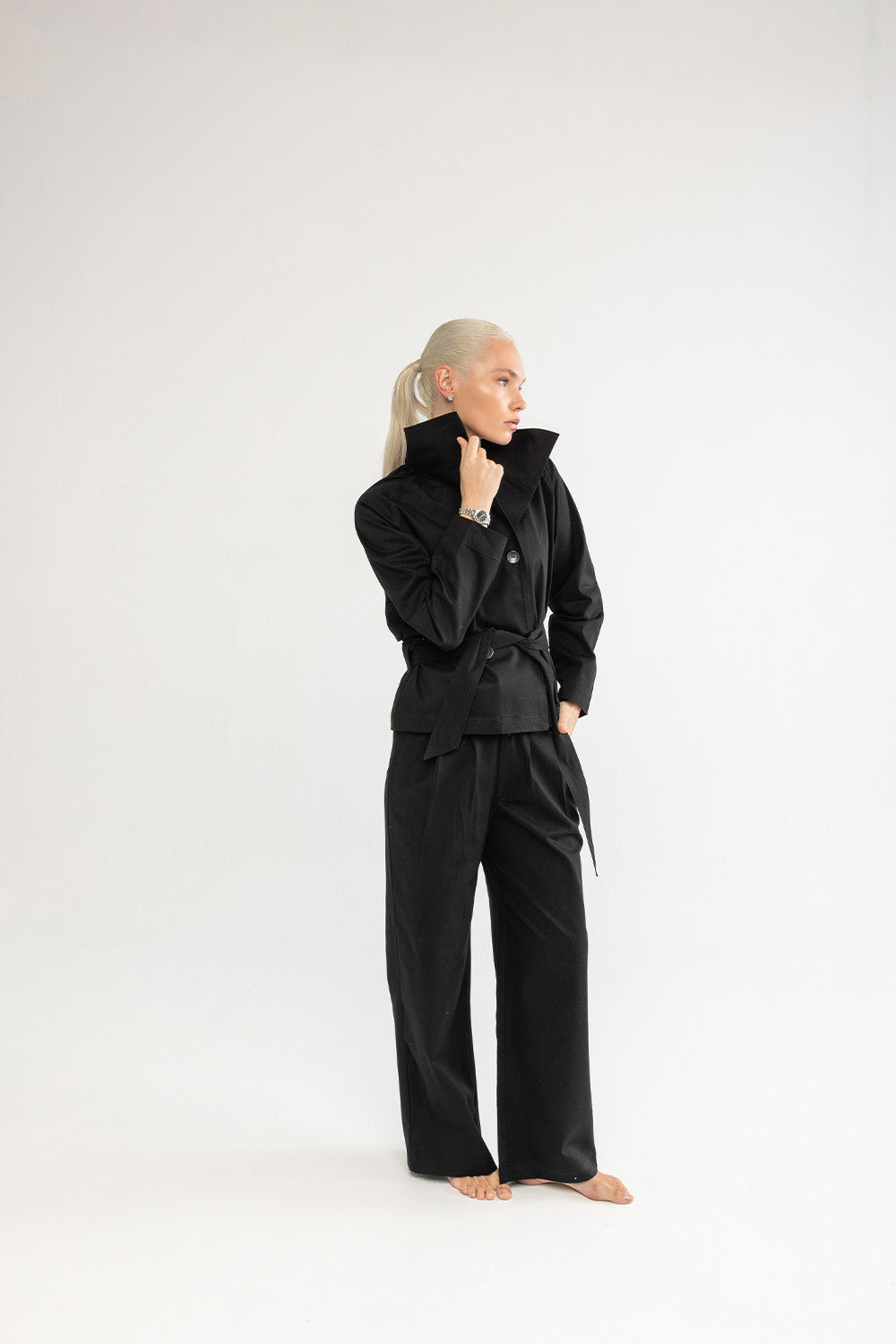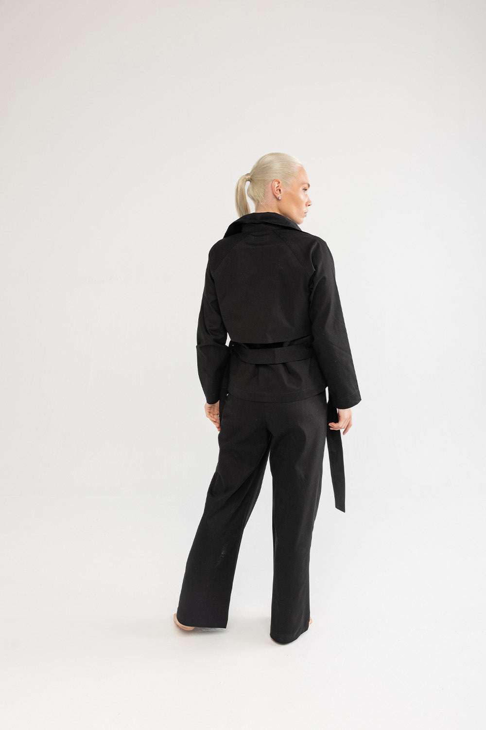 Klasik trençkot çizgilerini modern bir yorumla sunan bu model, sade tasarımıyla zamansız bir duruşa sahiptir. Formunu koruyan pamuklu kumaşı, belirgin yakası ve bele oturan kuşak detayıyla dengeli bir siluet oluşturur. Günlük şehir stilinde olduğu kadar akşam görünümlerinde de güçlü bir tamamlayıcıdır.