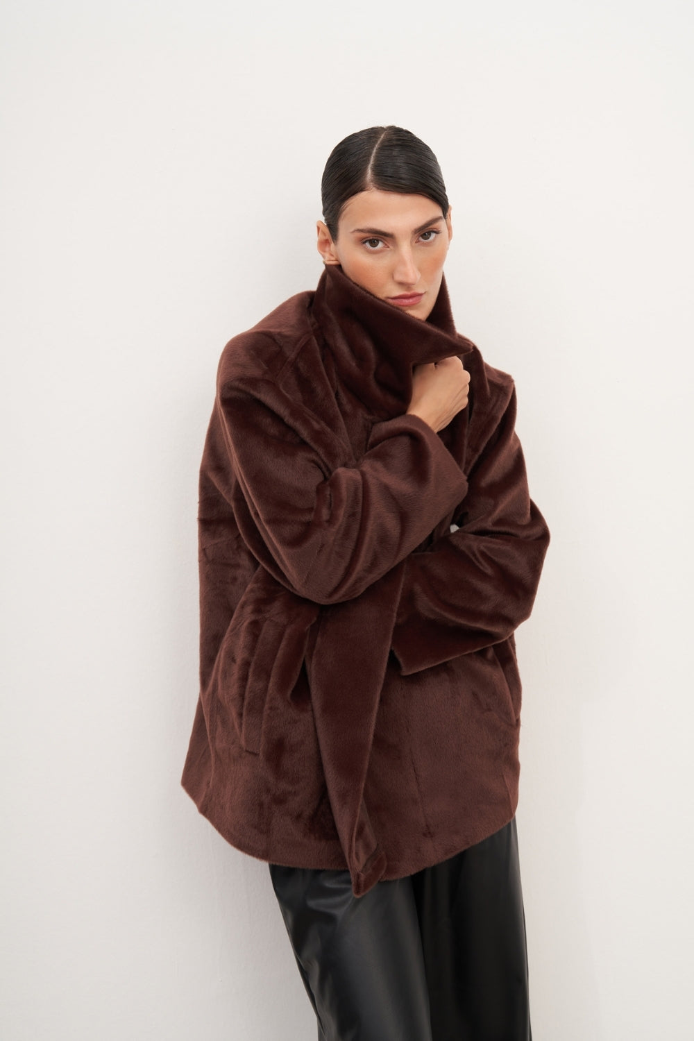 WINGCOTTAcı Kahve Yüksek Yaka Kaban