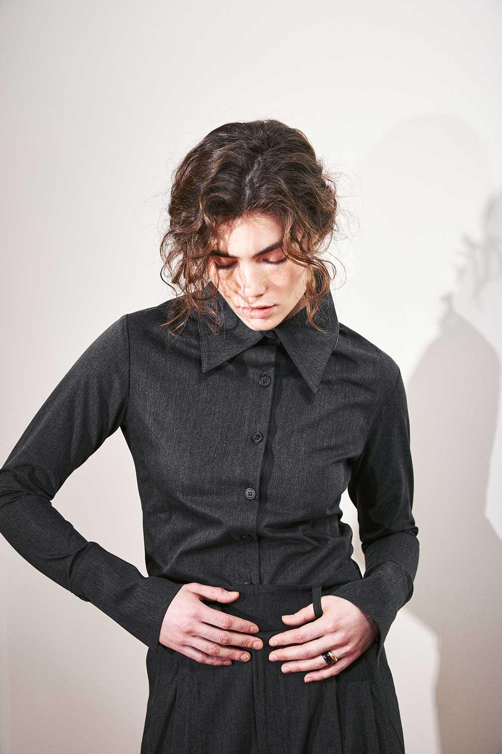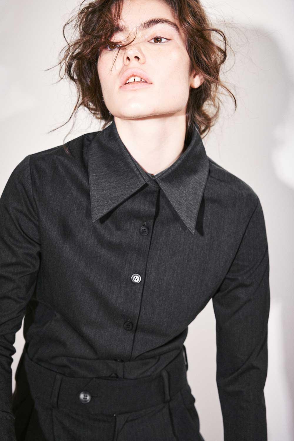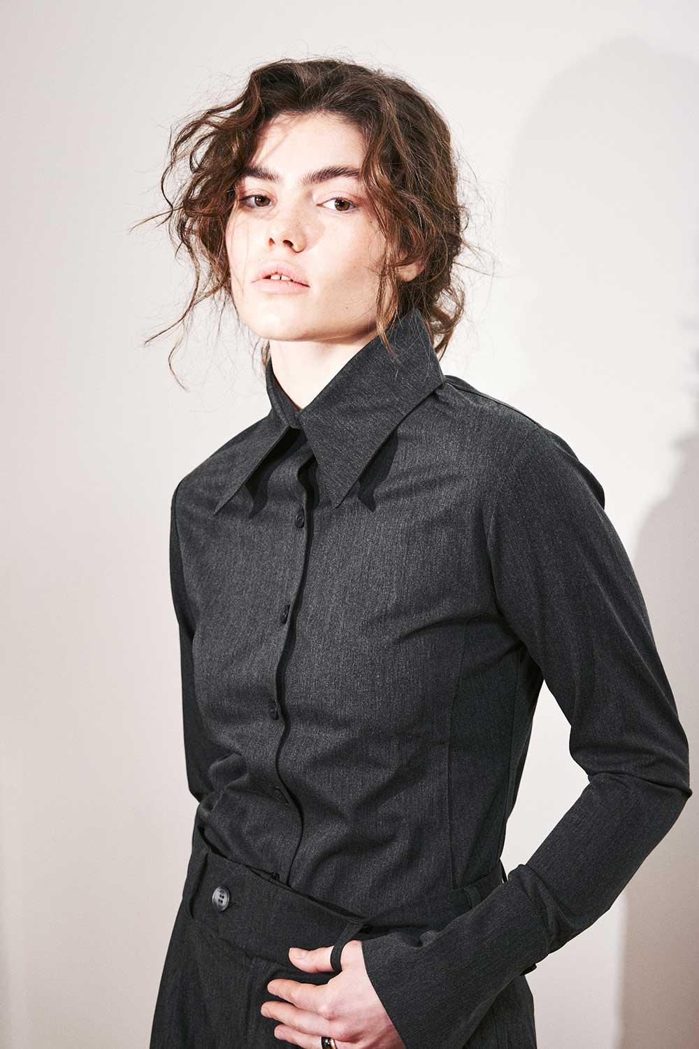 Smoked Pointed Collar Wide Model Cuffed Shirt Product features