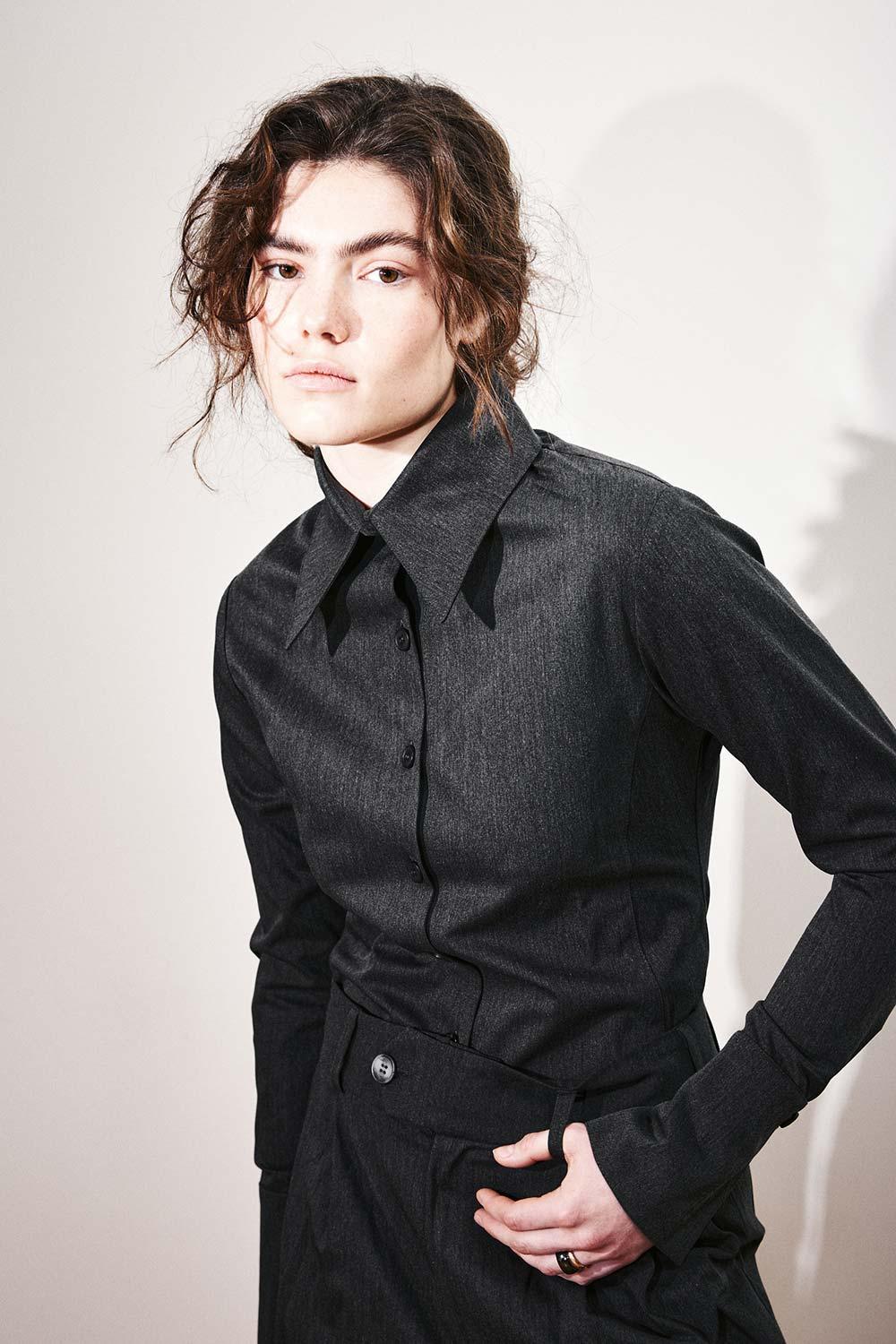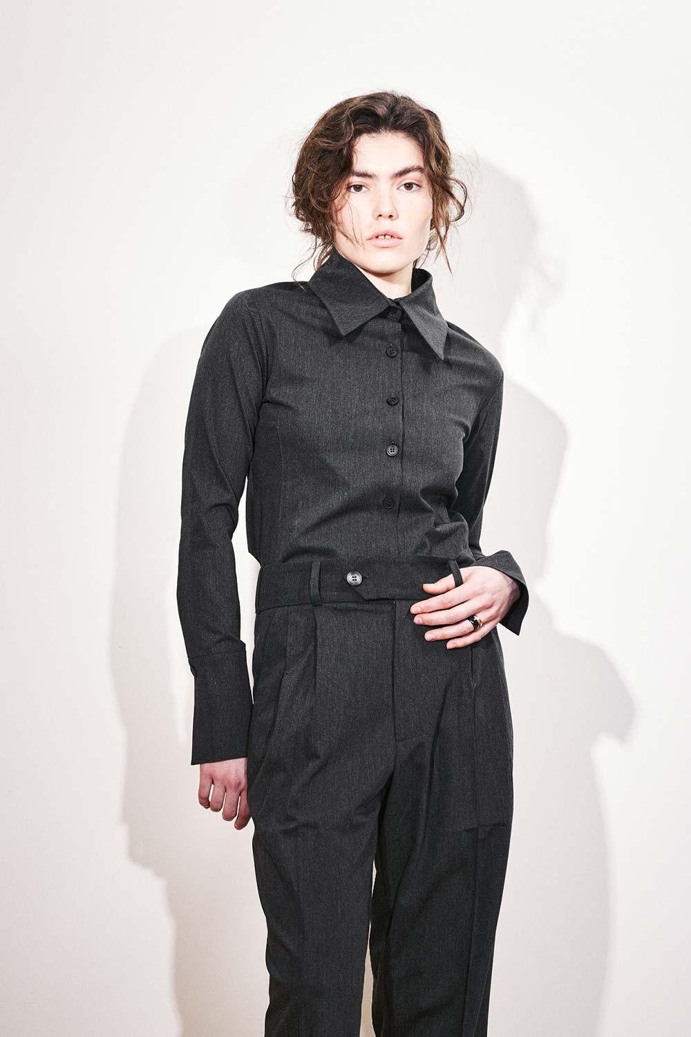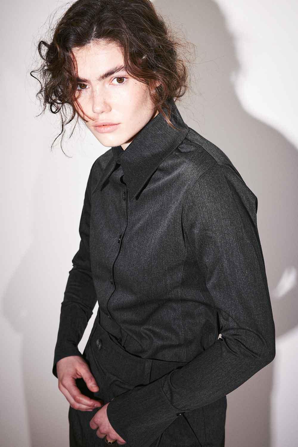 Smoked Pointed Collar Wide Model Cuffed Shirt Product features