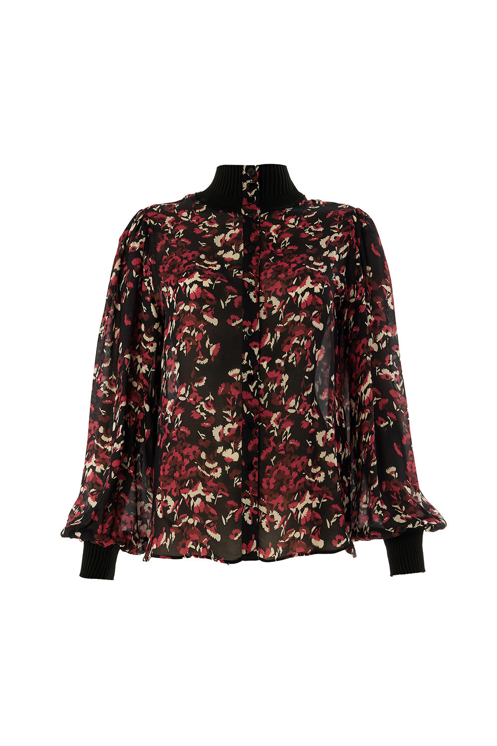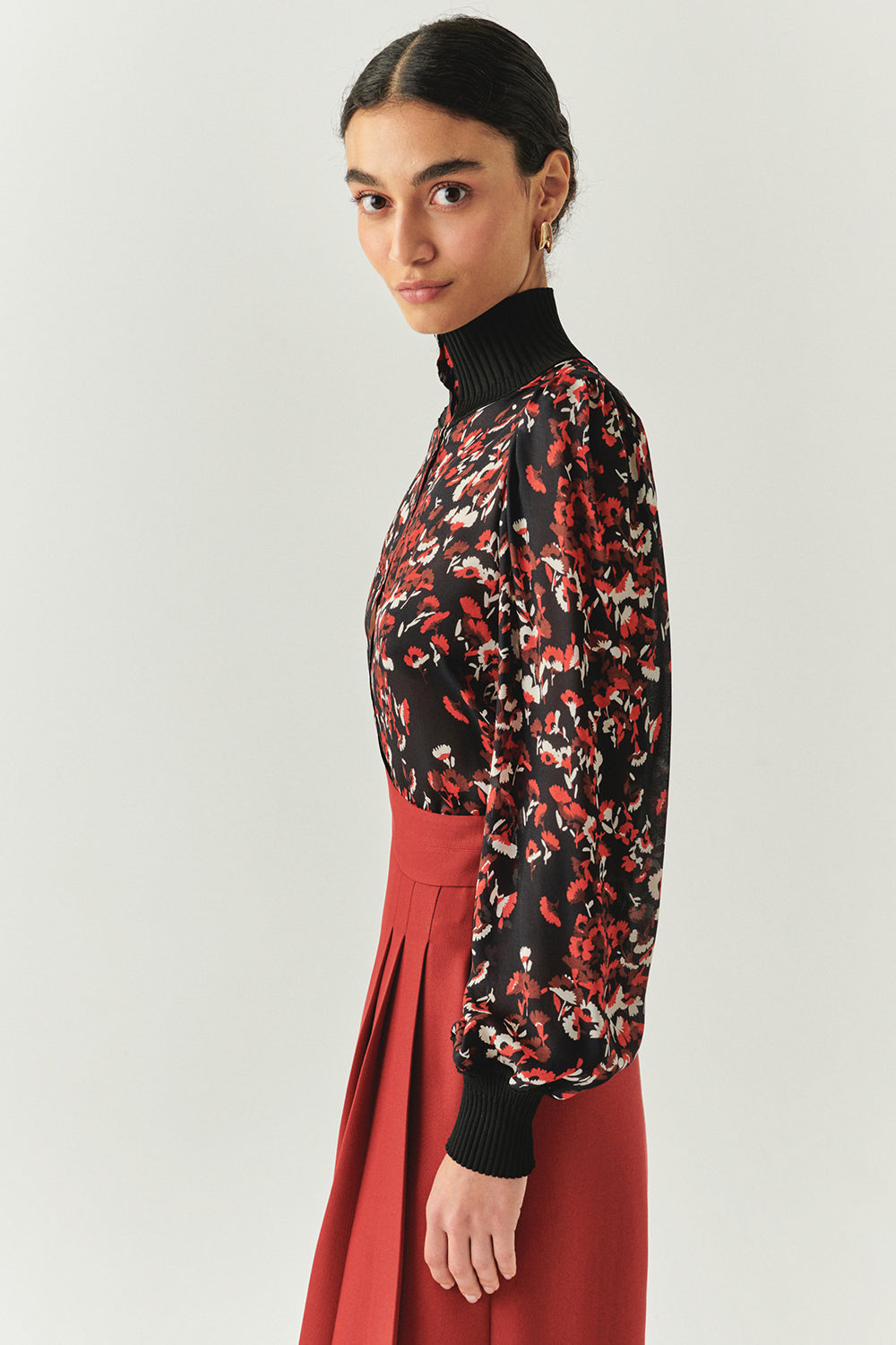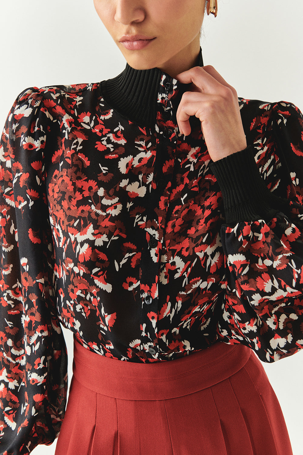 Yarım Balıkçı Yaka Uzun Kollu Şifon Regular Desenli Gömlek