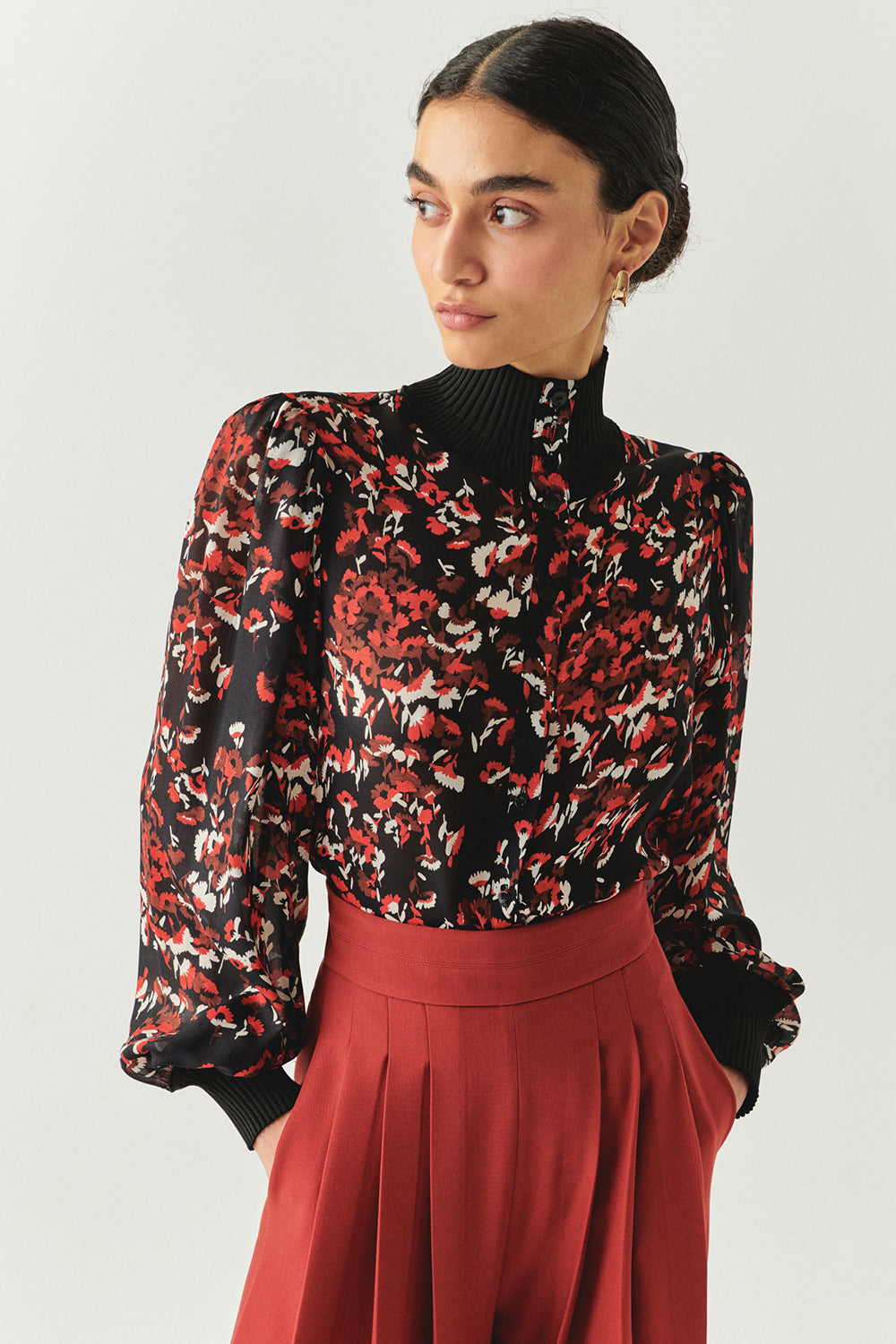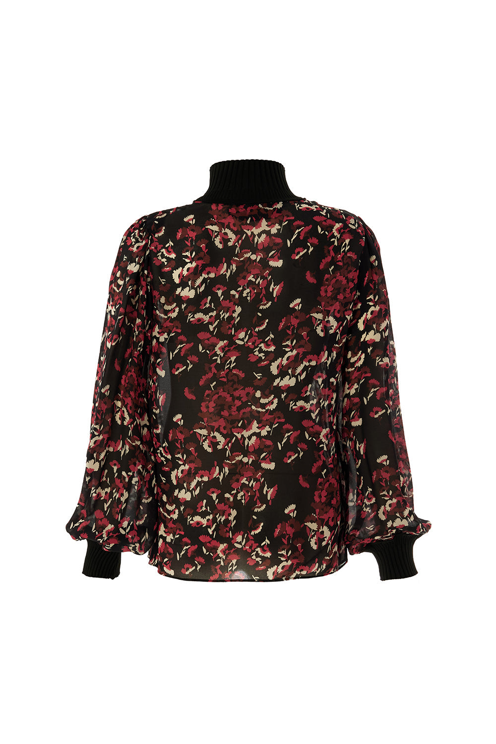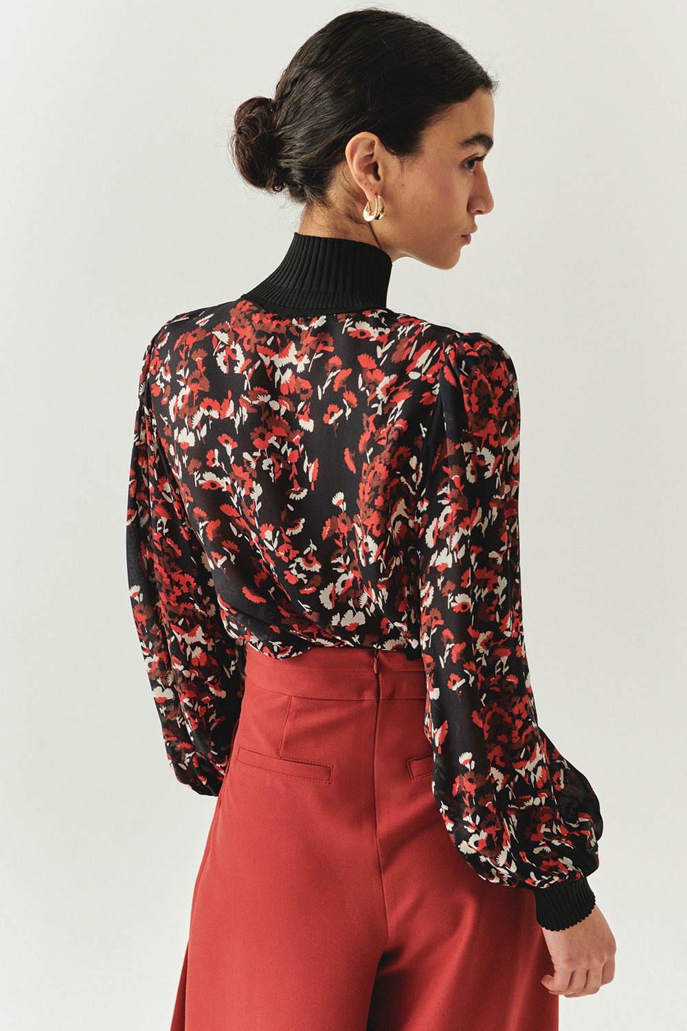 Yarım Balıkçı Yaka Uzun Kollu Şifon Regular Desenli Gömlek