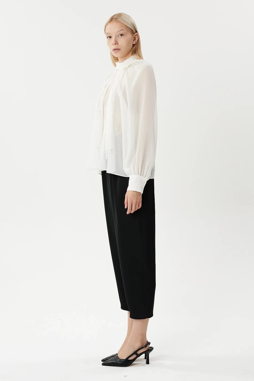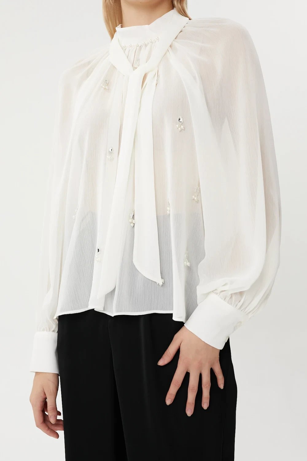 El İşlemesi Işıltılı Nakışlı Bol Kesim Şifon Gömlek
