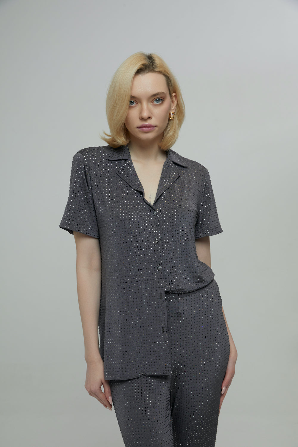 Zarif tasarımı ile dikkat çeken Kırlangıç yaka tamamı taşlı likralı bol kesim gömlek şıklığınızı ön plana çıkarır . Tek parçada şık ve iddialı görünüm sağlarken aynı renkte yüksek bel pantolon modelimiz ile takım olarak da kullanılabilir . Özel davet gecelerine, yılbaşı partilerine kadar pek çok ana uyum sağlayan güçlü ve göz alıcı bir seçimdir. Party ketegorisinde olan bu ürün tüm sezon boyunca gardrobunuzda yerini alacak zamansız bir seçenektir.