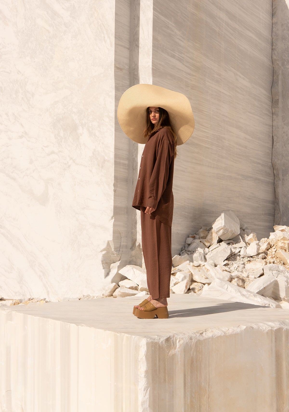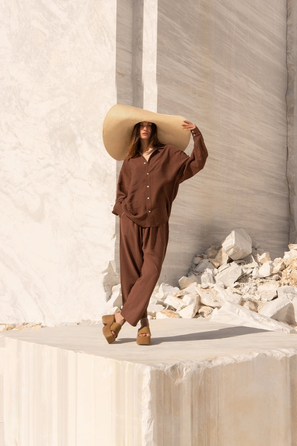 - Her durumda rahatlık ve tarz arayanlar için ideal olan Kahverengi Oversize Gömlek, gardırobunuzun vazgeçilmezi olmaya aday.