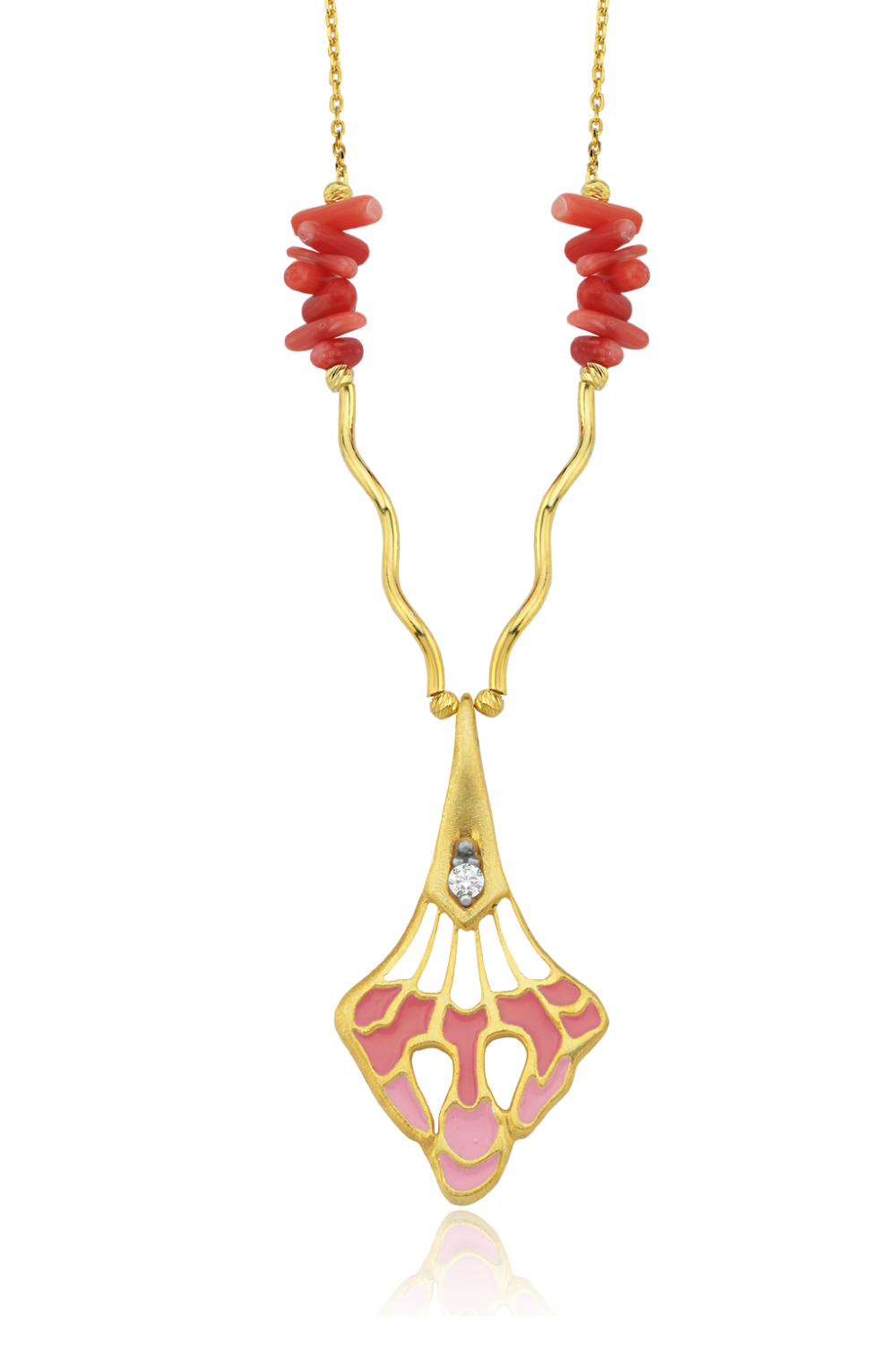 Mineli Mercanlı Yaprak Kolye
