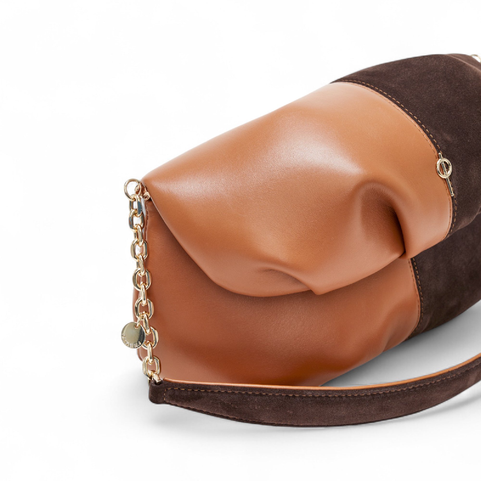 Otrera’nın ikonik modeli Leda şimdi iki renkli tasarımıyla karşınızda. Süetle derinin harika uyumuna bir de renklerini ekledik! Birbirine uyumlu dana derisiyle, süet deriden hazırlanan bu özel parça, zarafeti ve enerjisiyle tüm bakışları üzerine çekecek. Güçlü mıknatıslı kapağı sayesinde pratik bir kullanım sunar. Zincir askısıyla çapraz çanta olarak ya da askısız clutch olarak kullanılabilir. Leda, sıcak yaz günlerinde şıklığınızın vazgeçilmez tamamlayıcısı olacak.