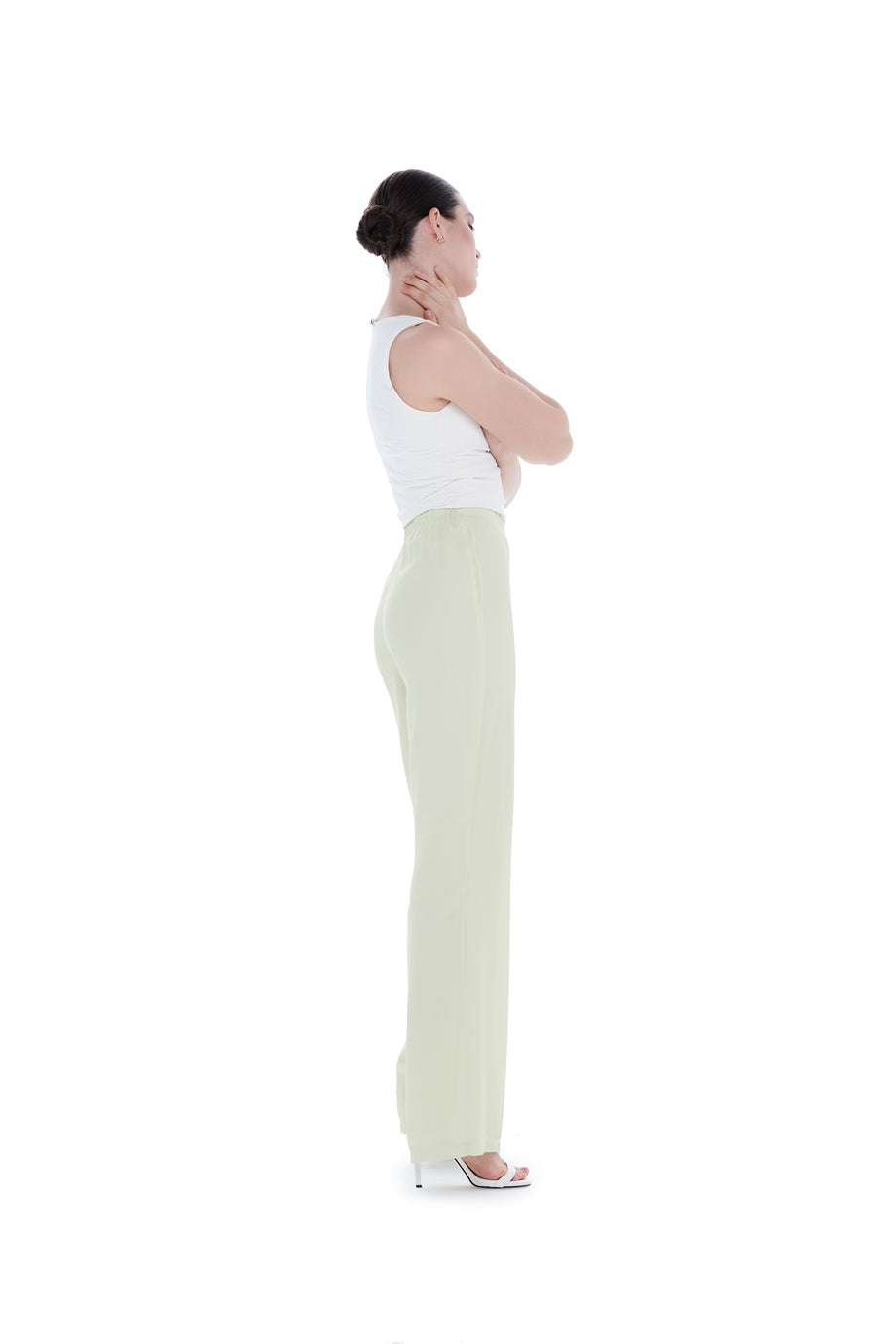 • Yan dikişten fermuar kapamalı, arka bel lastikli, düz kesim, astarlı bol pantolon.