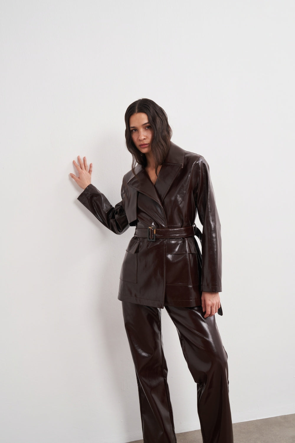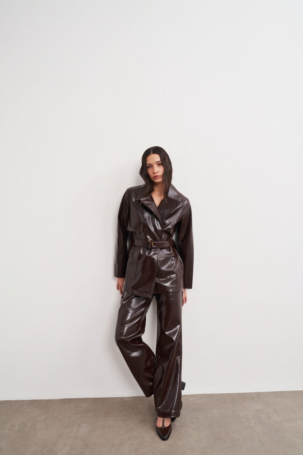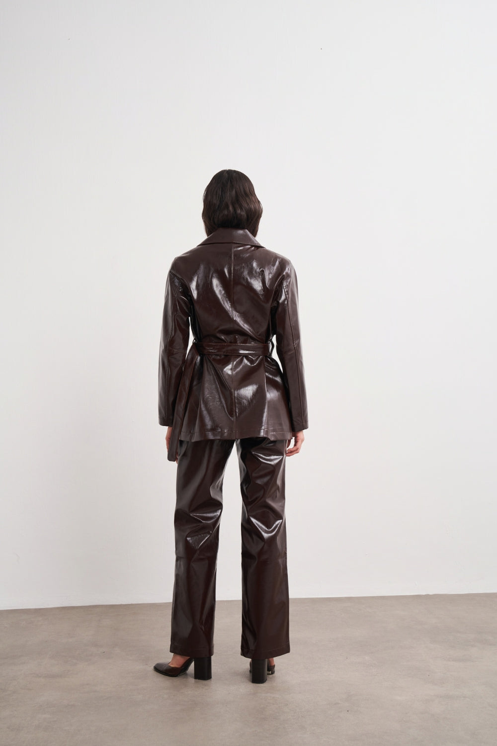 WINGCOTT Acı Kahve Damarlı Deri Pantolon