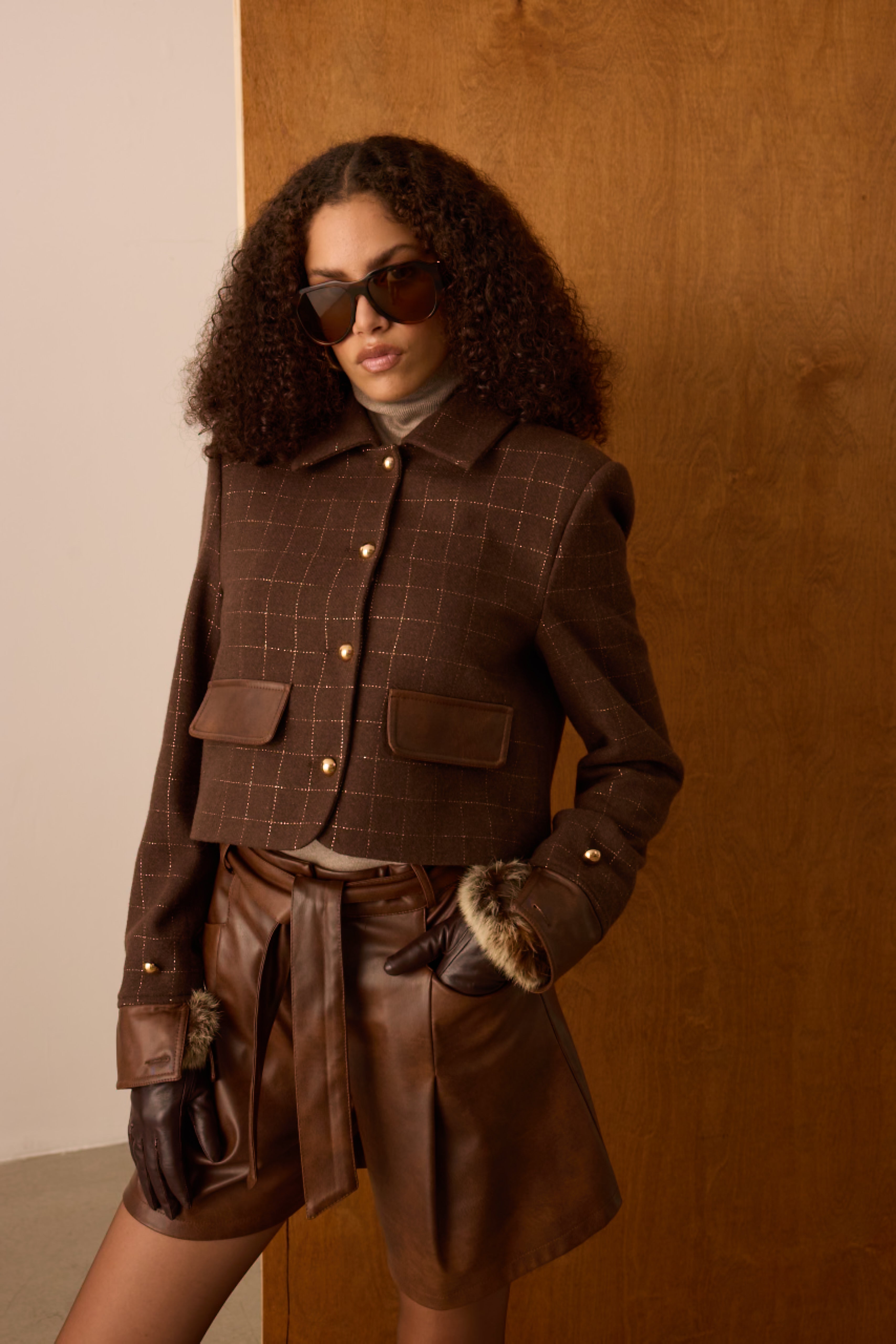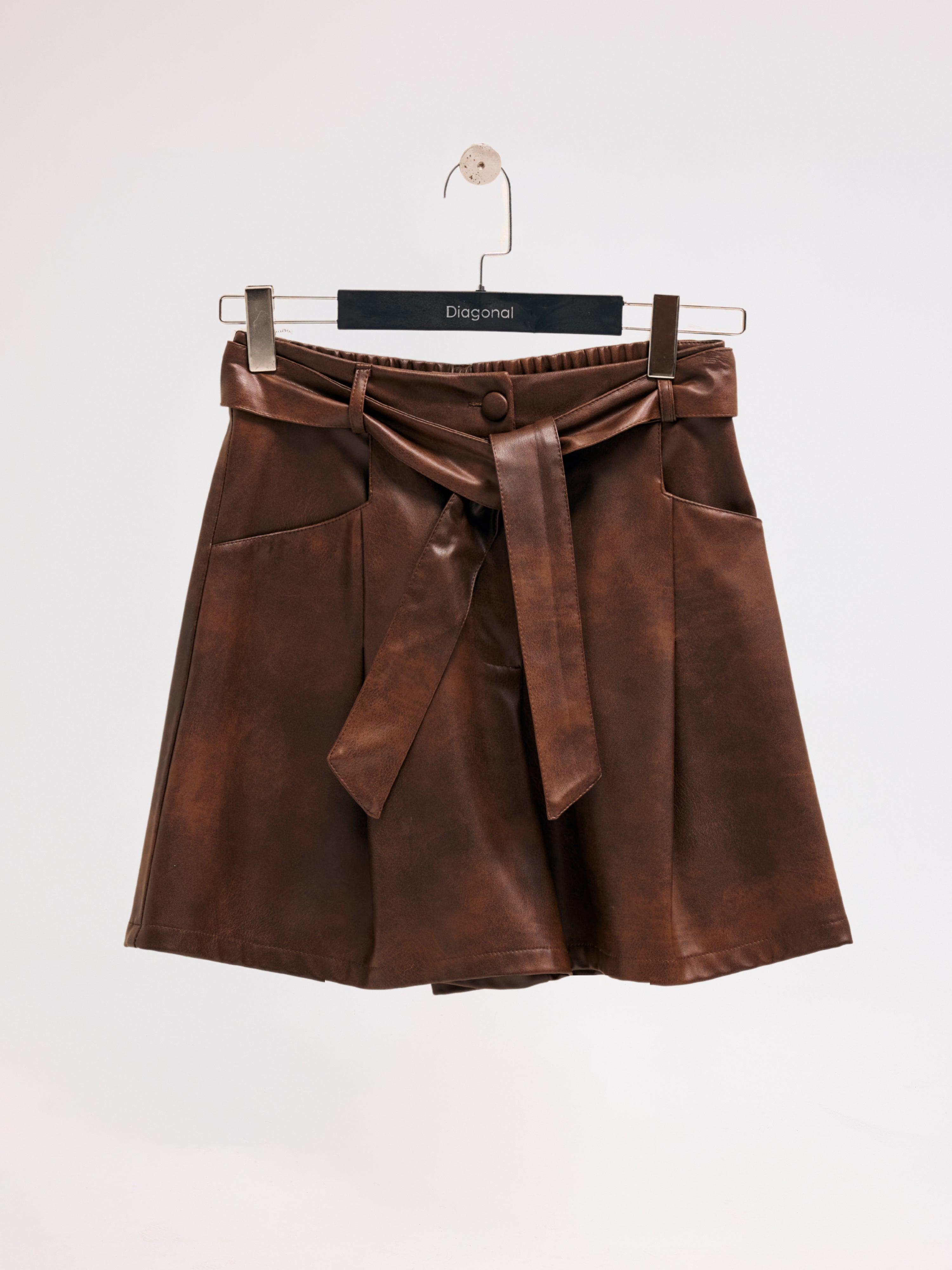 Kuşak Kemer Aksesuarlı Deri Görünümlü Kadın Ceket