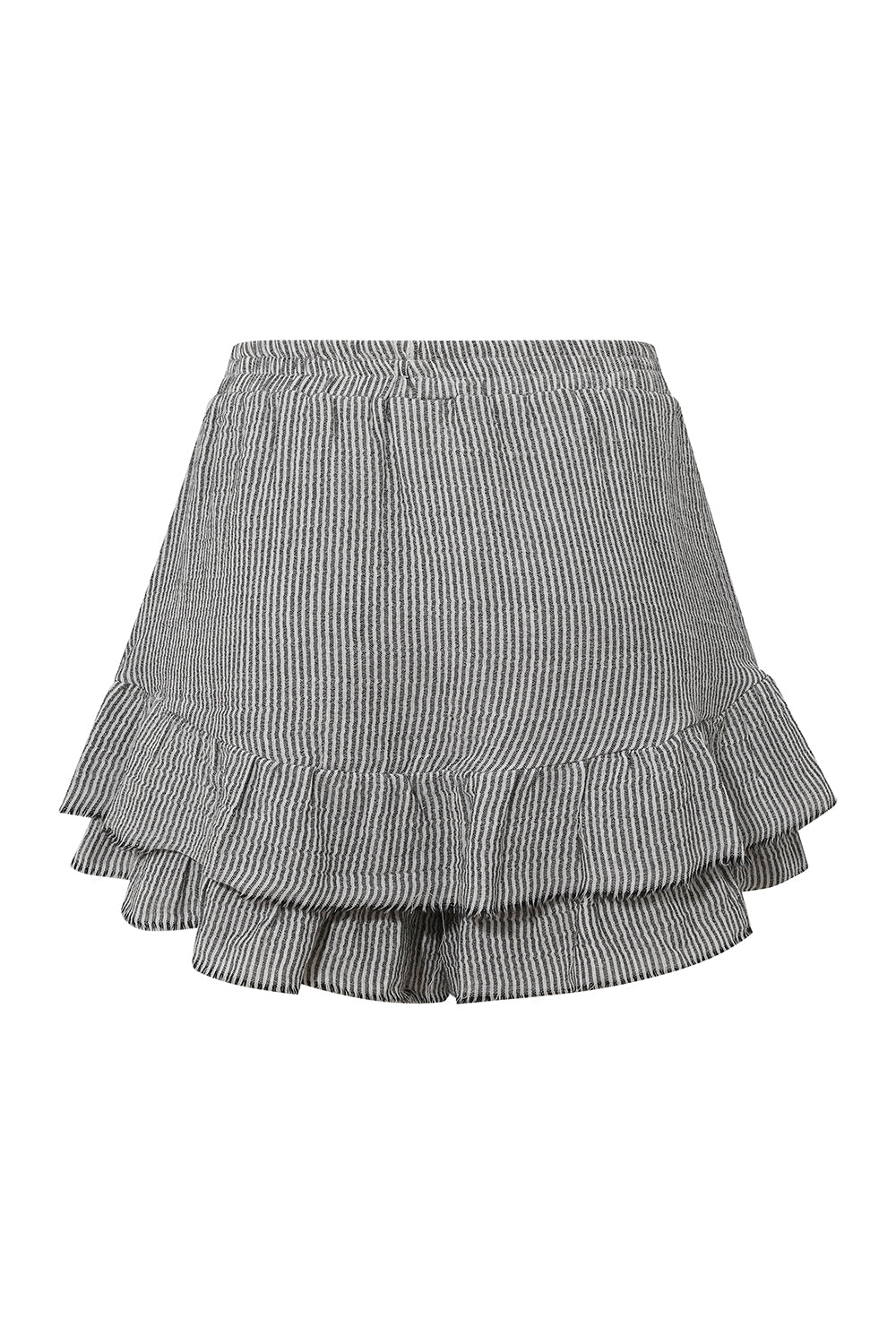 Antrasit Siyah Çizgili Şort Etek%100 Pamuk,Yumuşak dokulu ve nefes alabilen müslin kumaştan üretilmiştir,Ürün baskısız, ipliği boyalı şort etek silüetindedir,Beli lastikli ve yüksek bel olarak fırfır detayı ile tamamlanmıştır.BAKIM ÖNERİLERİ:30 derecede yıkama yapılabilir,Ağartıcı kullanılamaz,Makinede kurutmayınız.Bel: 62 cmKalça: 96 cmBoy: 42 cm