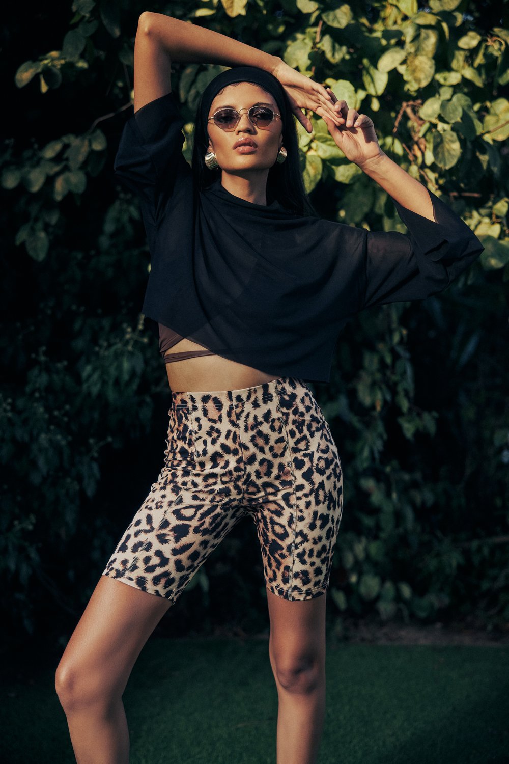 Karyoka Dikişli Leopar Desenli Bicker Şort