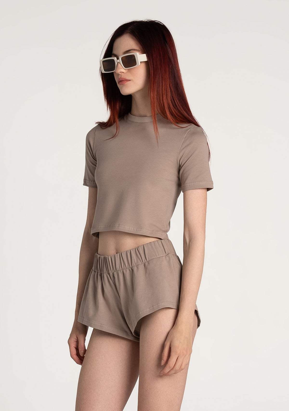 - Bisiklet yaka, göbek frikikli kısa tişört.