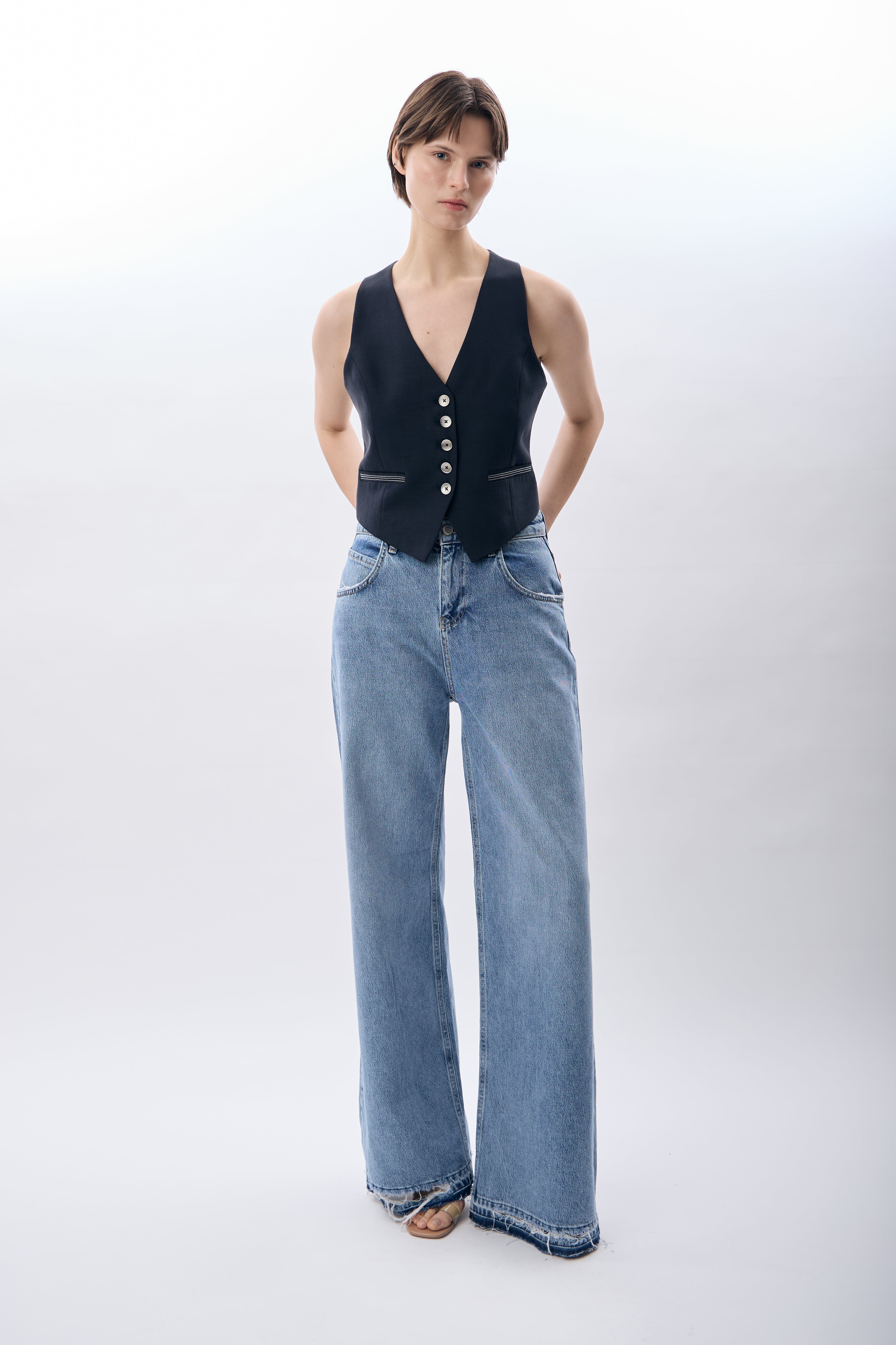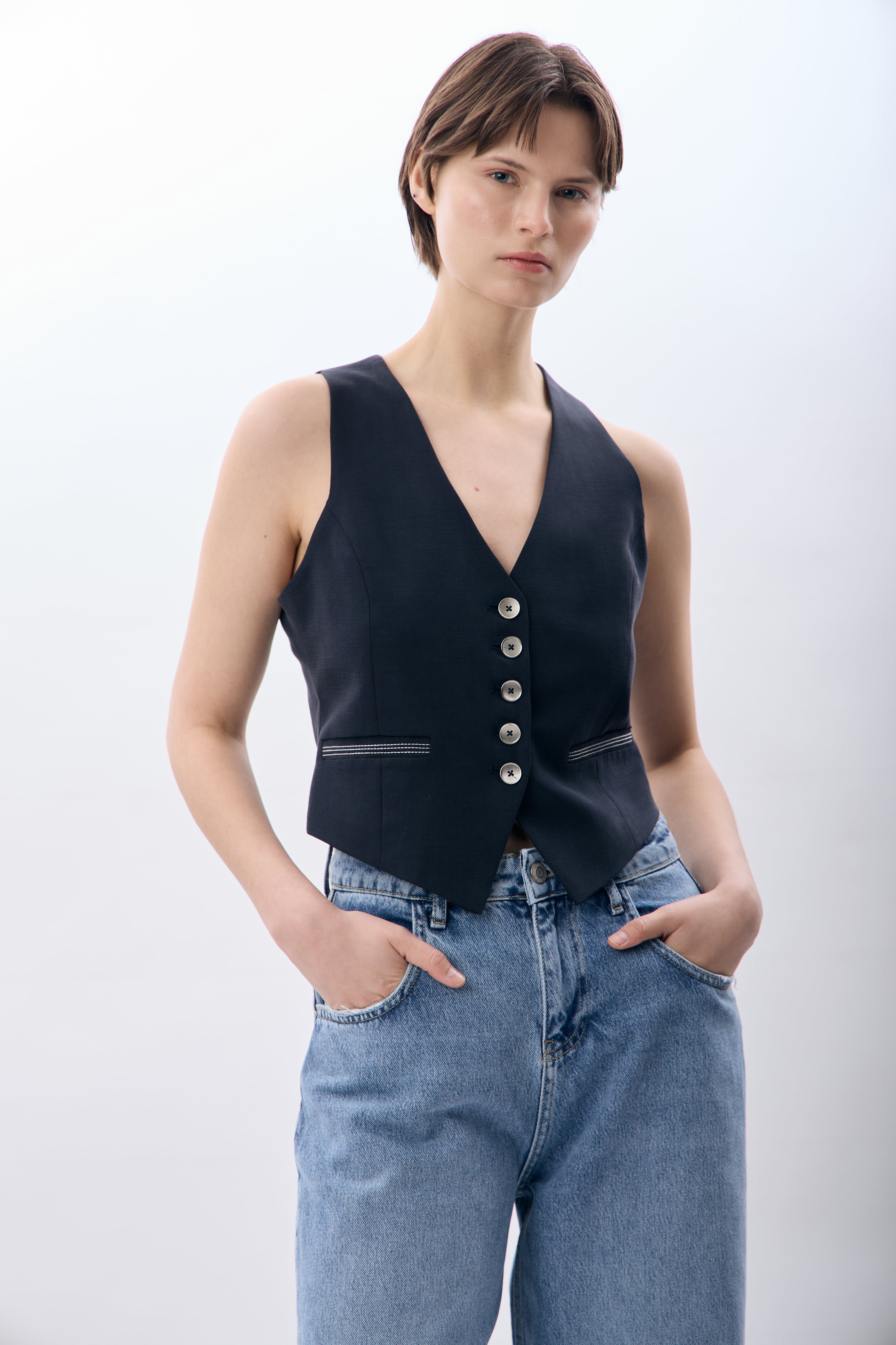 Dikiş Detaylı Kısa Yelek (Lacivert)