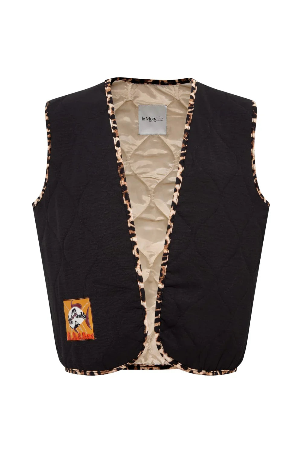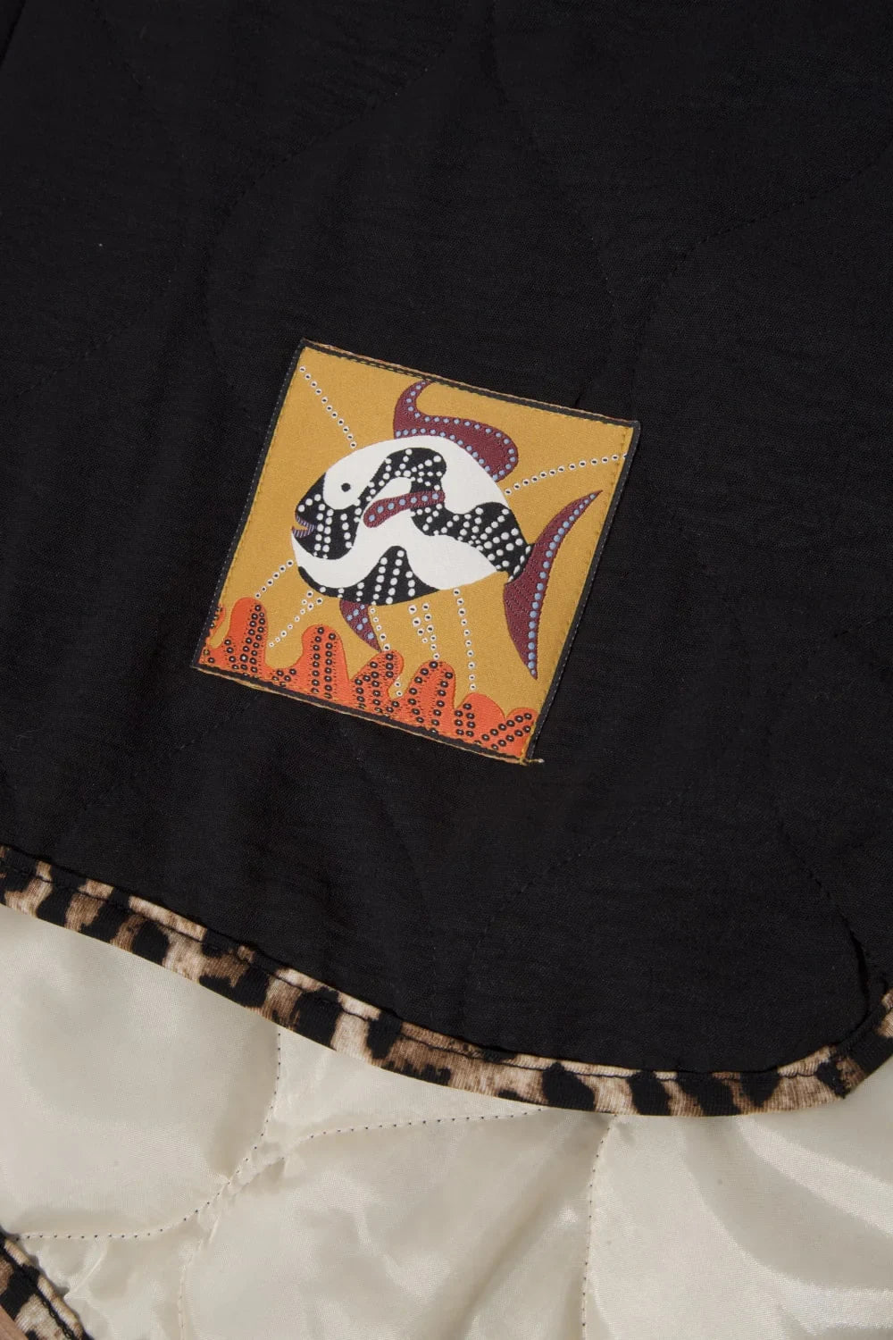 Düz Siyah Leopar Biye Detaylı YelekBalık desenli etiket detayı sanatçı Defne Camcıoğlu’nun eserlerinden oluşturulmuştur,%100 Polyesterdir, padding ve astar detaylıdır,Kapitone detayı ile leopar desenli biye birleşimi şık bir görünüm sunmaktadır,Ürün standart beden olup BOY:61 cm EN: 57 cmBAKIM ÖNERİLERİ:30 derecede yıkama yapılabilir,Ağartıcı kullanılamaz,Makinede kurutmayınız.