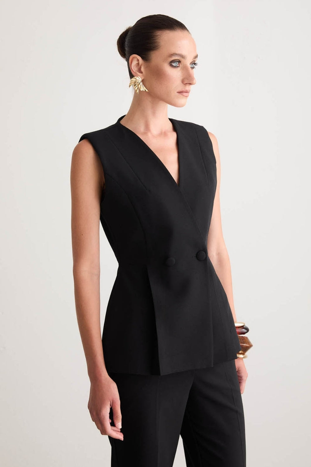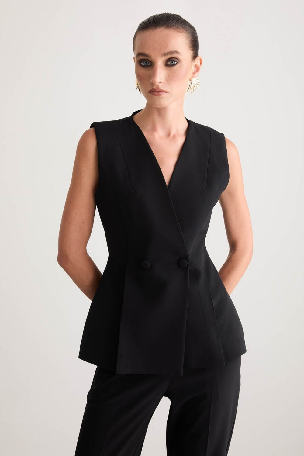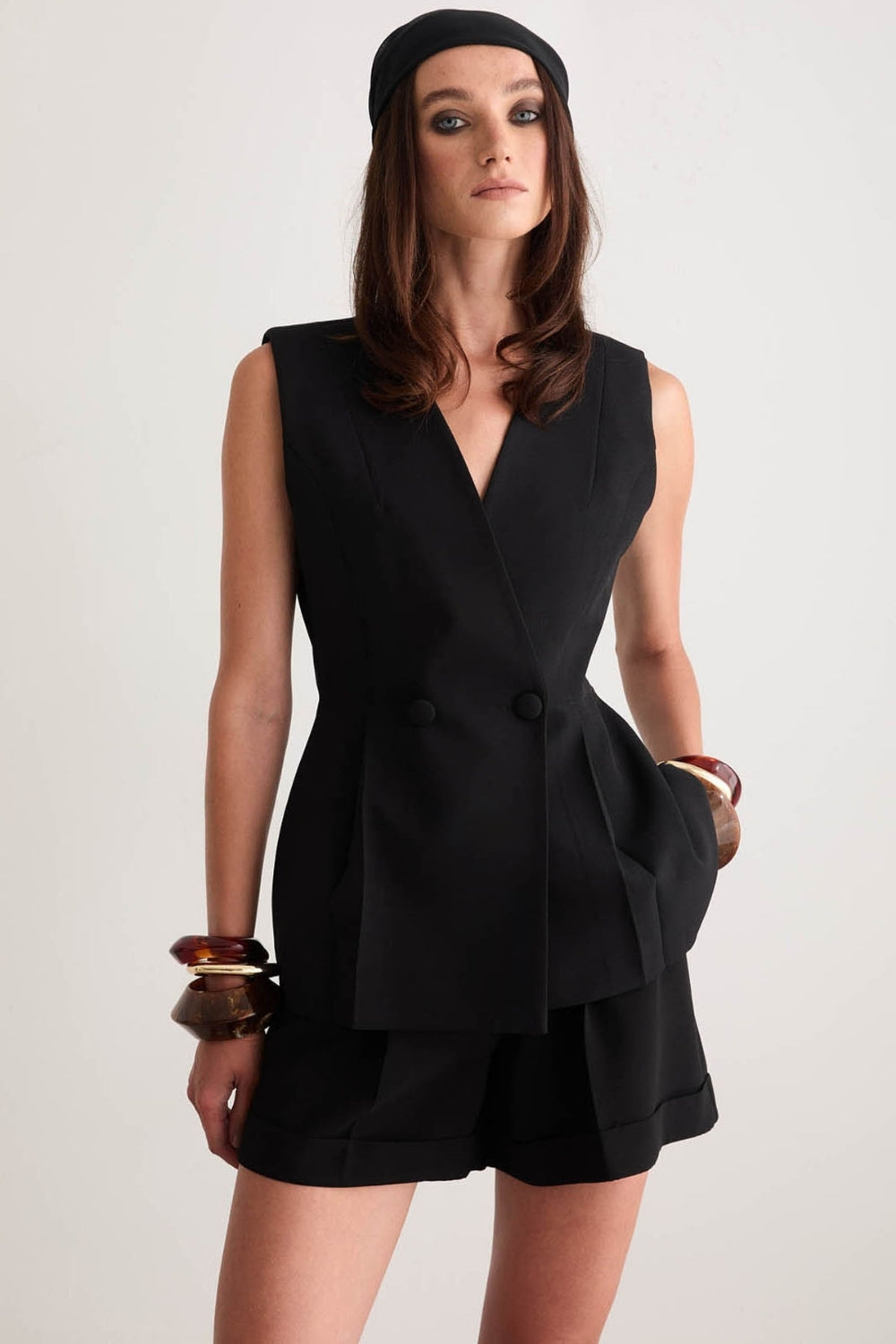 Boldness Siyah Belden Peplum Açılan Vatkalı Yelek