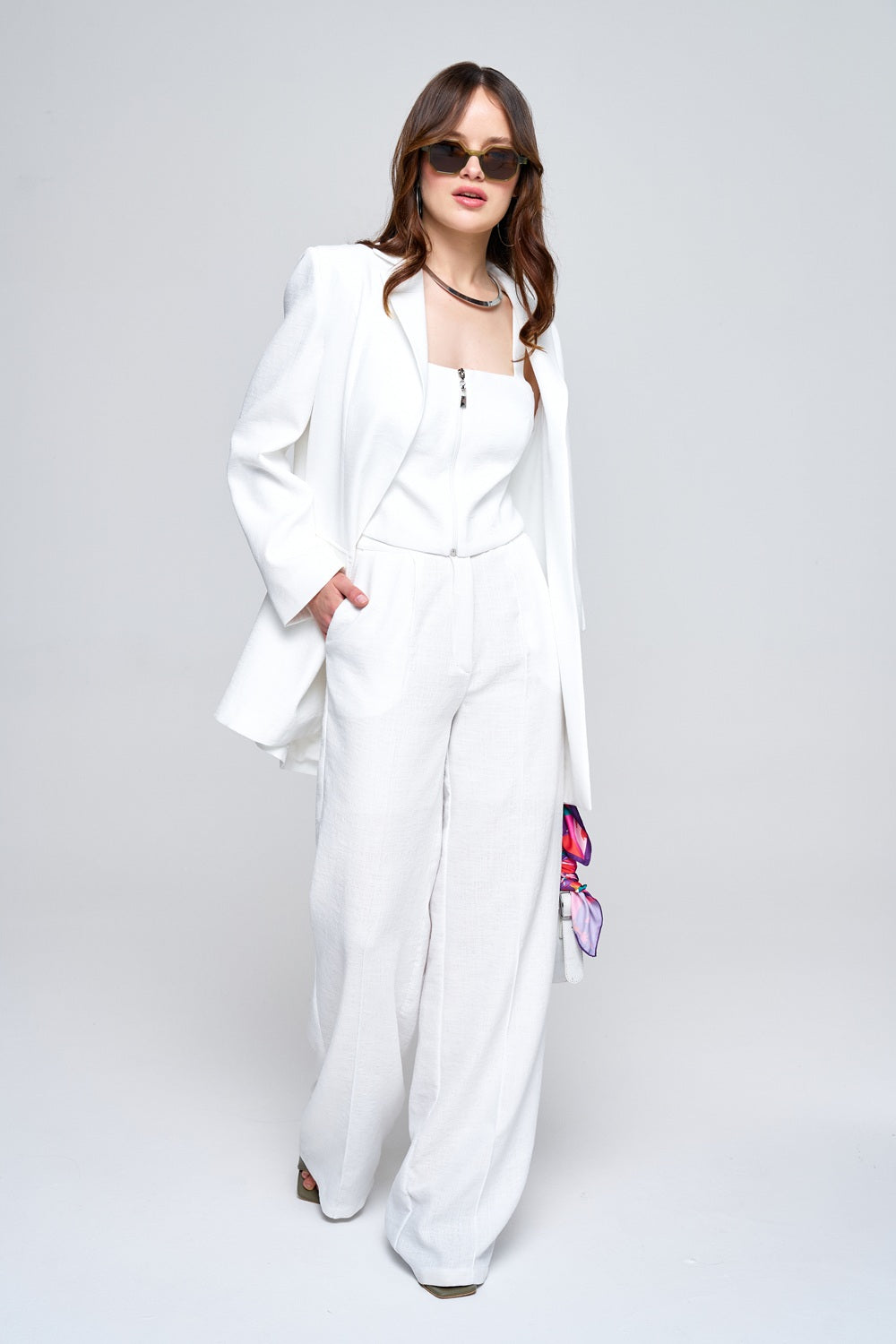 Kare Yaka Keten Beyaz Yelek Büstiyer