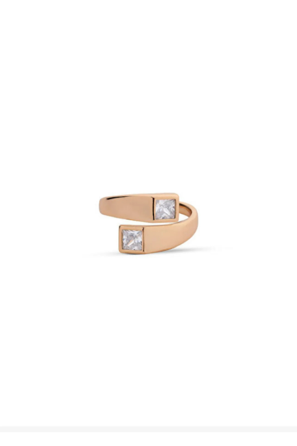 Çift Kare Taşlı Altın Kaplama Kadın Yüzük